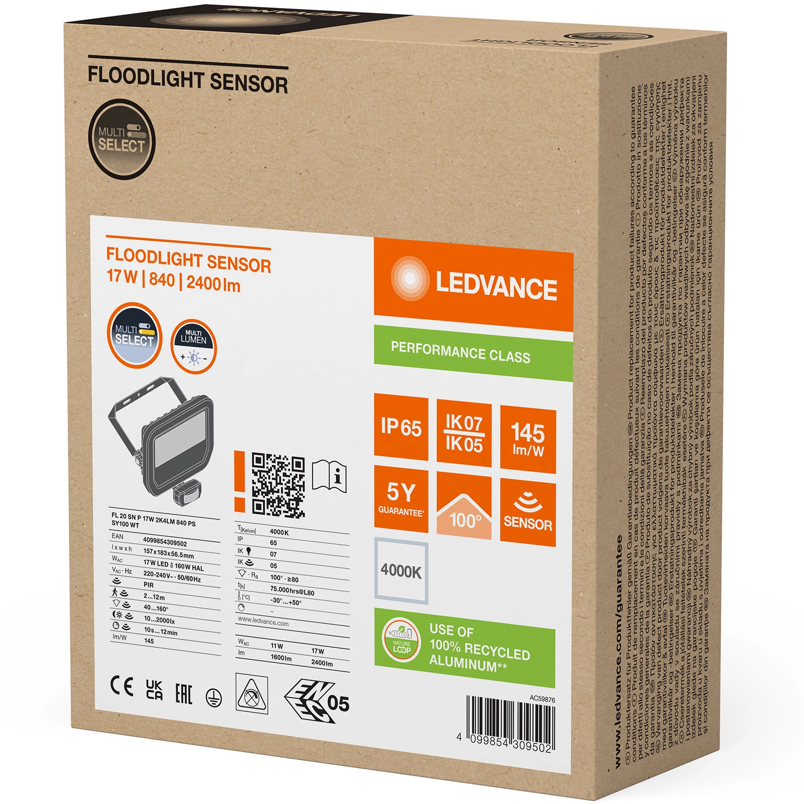 Naświetlacz LED Reflektor Zewnętrzny Lampa 17W 2400lm 4000K IP65 Biały Z Czujnikiem Ruchu i Zmierzchu Floodlight Ledvance