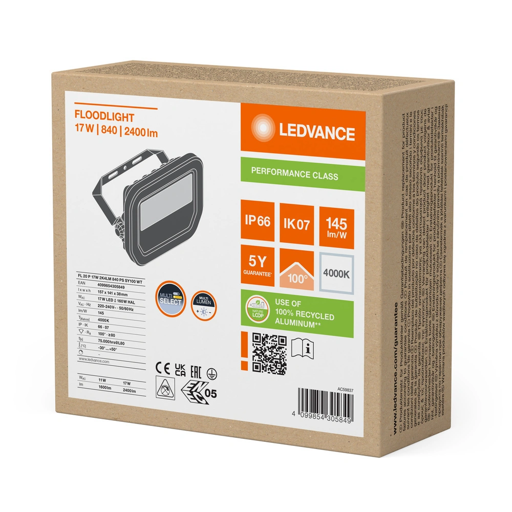 Montaż naszego naświetlacza LED to szybki i prosty proces, a jego lekka i kompaktowa konstrukcja sprawia, że idealnie nadaje się do różnych zastosowań. Oprócz doskonałych parametrów technicznych, jak współczynnik mocy 0.9 oraz efektywność świetlna 145 lm/W, reflektor Ledvance posiada klasę ochronności I, co czyni go bezpiecznym i niezawodnym źródłem światła. Inwestując w nasz produkt, inwestujesz w oświetlenie, które nie tylko zredukowało zużycie energii, ale także zmniejsza Twoje rachunki za prąd, stając się ekologiczną opcją dla Twojego domu lub firmy.