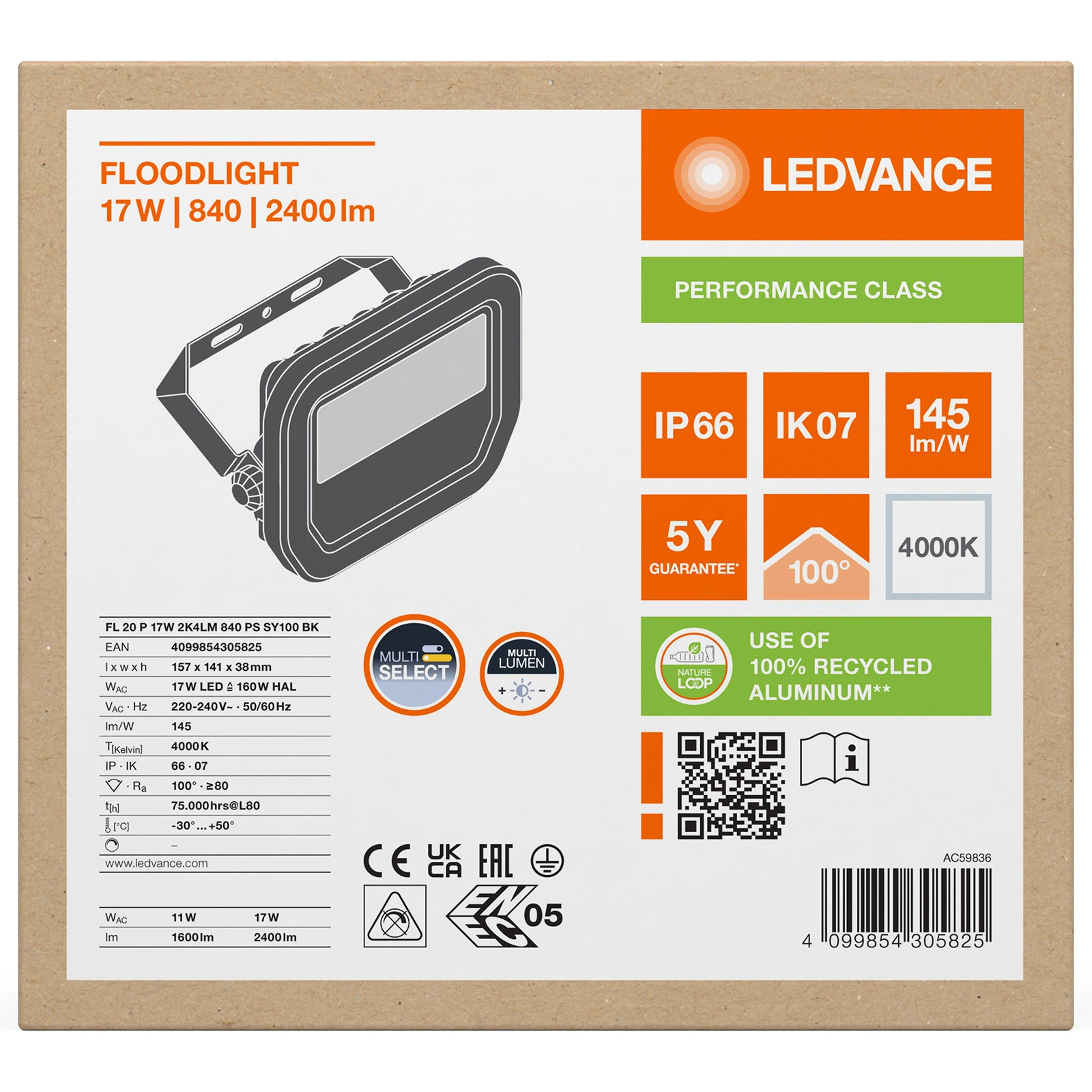 Naświetlacz nie zawiedzie Cię nawet w najtrudniejszych warunkach atmosferycznych, dzięki wysokiej ochronie IP66 i wyjątkowej trwałości do 100000 godzin pracy. Wykonany z solidnego aluminium, odporny na skrajne temperatury od -30°C do +50°C, idealnie sprawdzi się w każdej strefie klimatycznej. Bezpieczeństwo użytkowania zapewnia solidny montaż oraz wysoka klasa ochronności. Postaw na jakość, którą gwarantuje Ledvance, i zainwestuj w niezawodne oświetlenie zewnętrzne na lata!