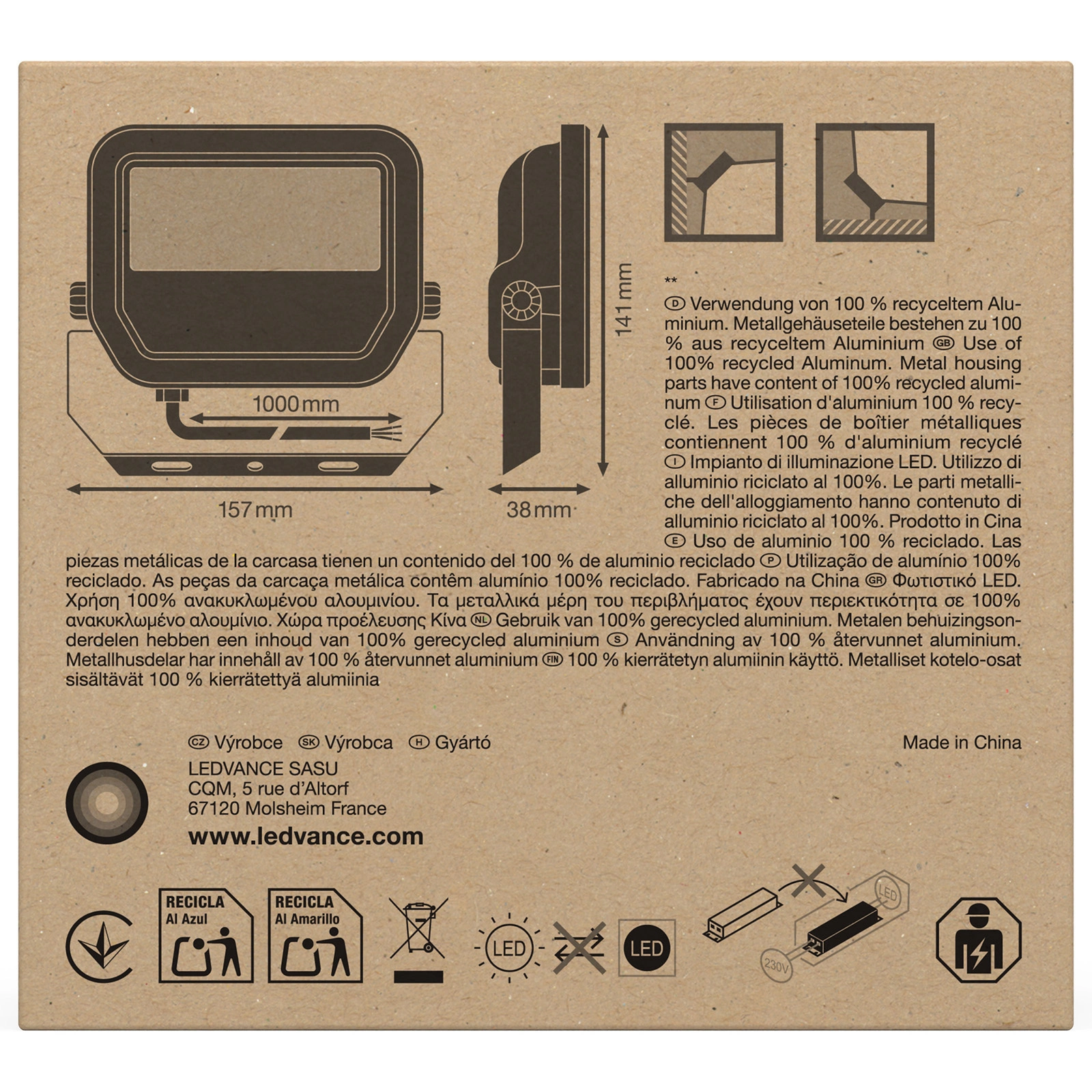 Naświetlacz LED od Ledvance to nie tylko funkcjonalność, ale także wyrafinowany wygląd. Jego czarna obudowa z aluminium nadaje mu elegancji, a solidna konstrukcja z szybą osłonową z wytrzymałego szkła zapewnia długowieczność. Przyjazna dla użytkownika konstrukcja natynkowego montażu ułatwia instalację, a fakt, że nie potrzebuje wymiennych źródeł światła, czyni go wyjątkowo bezobsługowym. Wybierz zewnętrzny reflektor LED, który łączy w sobie nowoczesną technologię, trwałość aż do 100000 godzin oraz przyjazność dla środowiska z zerową zawartością rtęci!