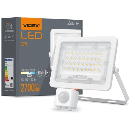 Naświetlacz LED 30W 2700lm 5000K IP65 Biały z czujnikiem ruchu i zmierzchu VIDEX LUCA