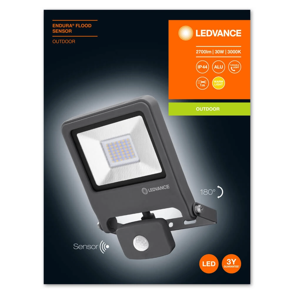 Naświetlacz LED Reflektor Zewnętrzny Lampa 30W 2700lm 3000K IP44 Szary Z Czujnikiem Ruchu i Zmierzchu Endura Ledvance