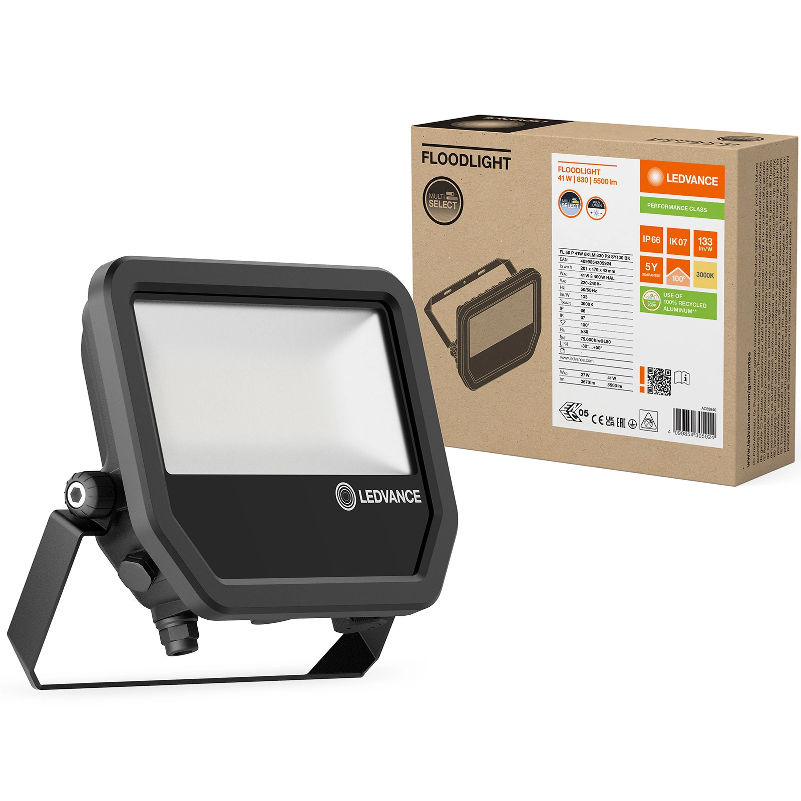 Odkryj niezrównane oświetlenie zewnętrzne dzięki Naświetlaczowi LED Reflektorowi Zewnętrznemu od marki Ledvance! Ta zaawansowana lampa o mocy 41W oferuje imponujący strumień świetlny wynoszący 5500 lumenów, co gwarantuje doskonałe oświetlenie nawet dużych powierzchni. Z barwą światła 3000K, tworzy przyjemnie ciepłą atmosferę, idealną do podkreślania uroku Twojej przestrzeni zewnętrznej. Dzięki solidnej konstrukcji i stopniowi ochrony IP66, reflektor pozostaje odporny na czynniki atmosferyczne, pył oraz deszcz, co sprawia, że jest idealnym wyborem do długotrwałego użytku na zewnątrz.