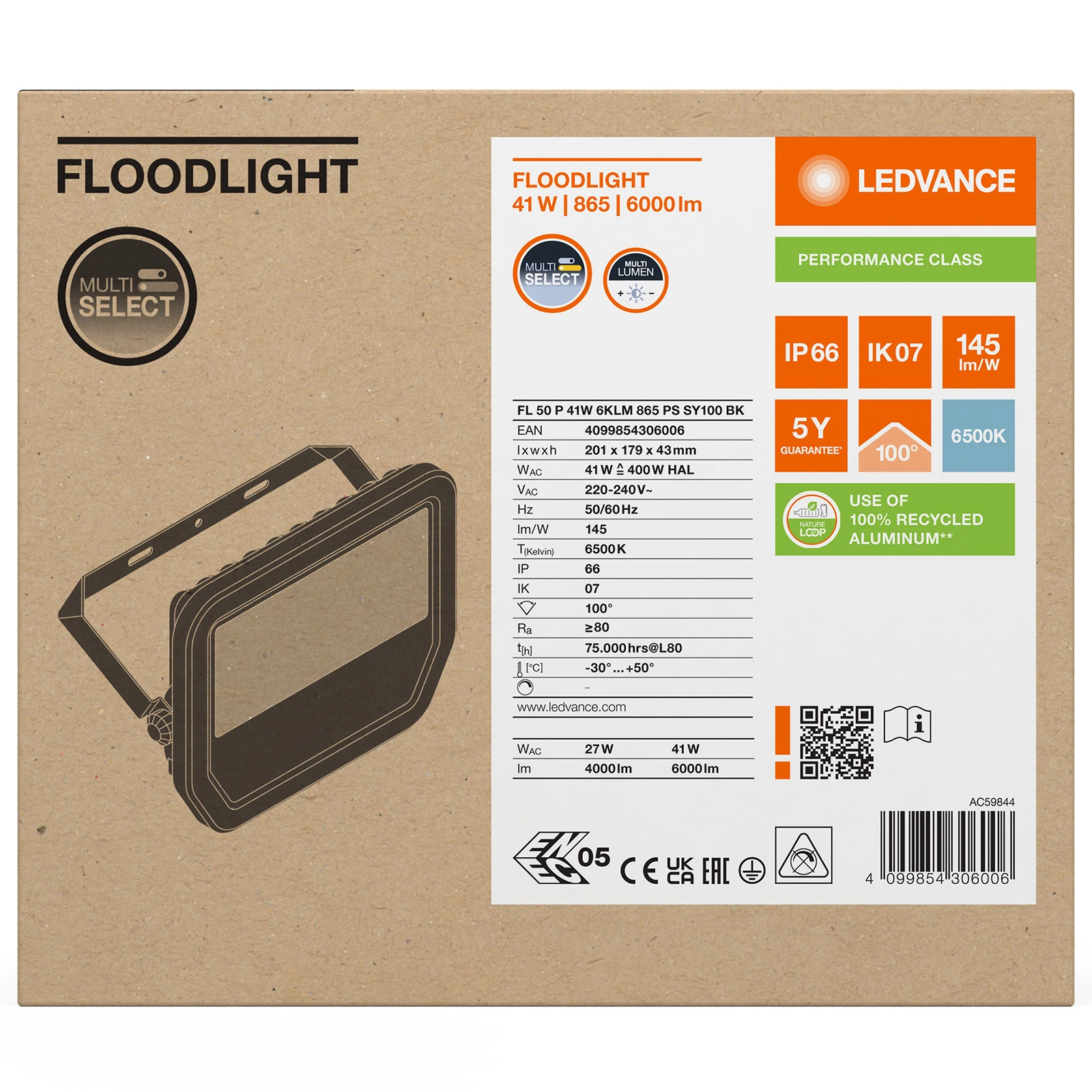 Oświeć swoje przestrzenie z niezrównaną mocą i efektywnością dzięki naszemu Naświetlaczowi LED Reflektorowi Zewnętrznemu o mocy 41W. Przeznaczony do użytku zewnętrznego, ten naświetlacz w kolorze czarnym to harmonijne połączenie nowoczesnego designu i zaawansowanej technologii LED od firmy Ledvance. Zaprojektowany z myślą o minimalistycznej estetyce i praktyczności, oferuje jasne, chłodne białe światło o strumieniu 6000lm i temperaturze 6500K, pozwalając cieszyć się naturalnym oświetleniem o każdej porze dnia i nocy.