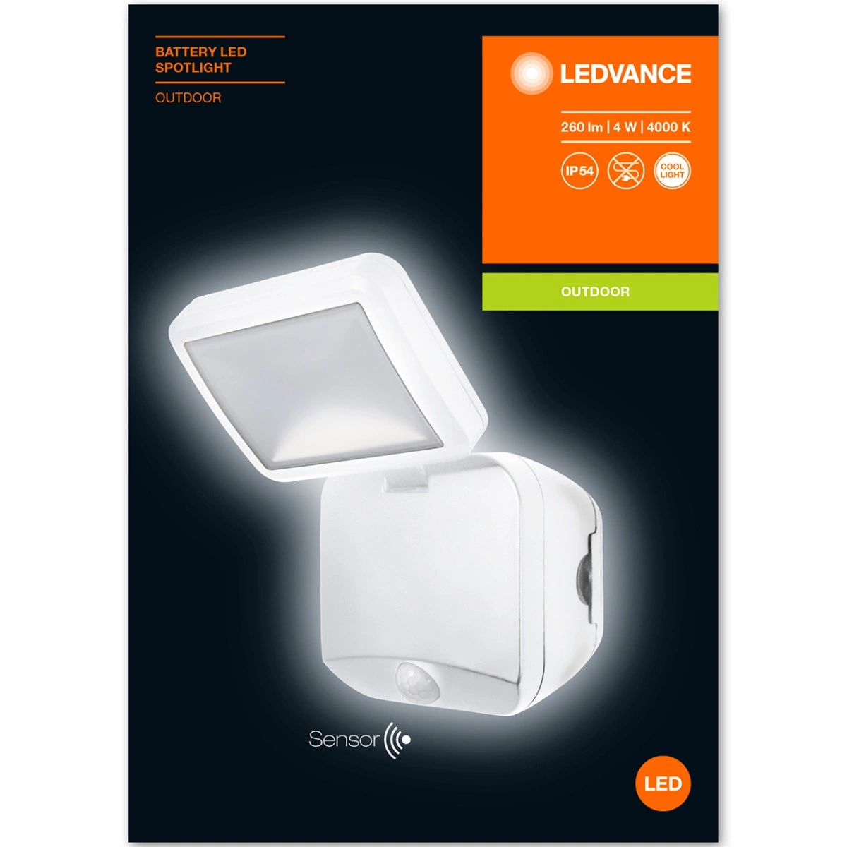 Naświetlacz LED Reflektor Bateryjny 4W 260lm 4000K IP54 Biały Z Czujnikiem Ruchu i Zmierzchu Spotlight Ledvance