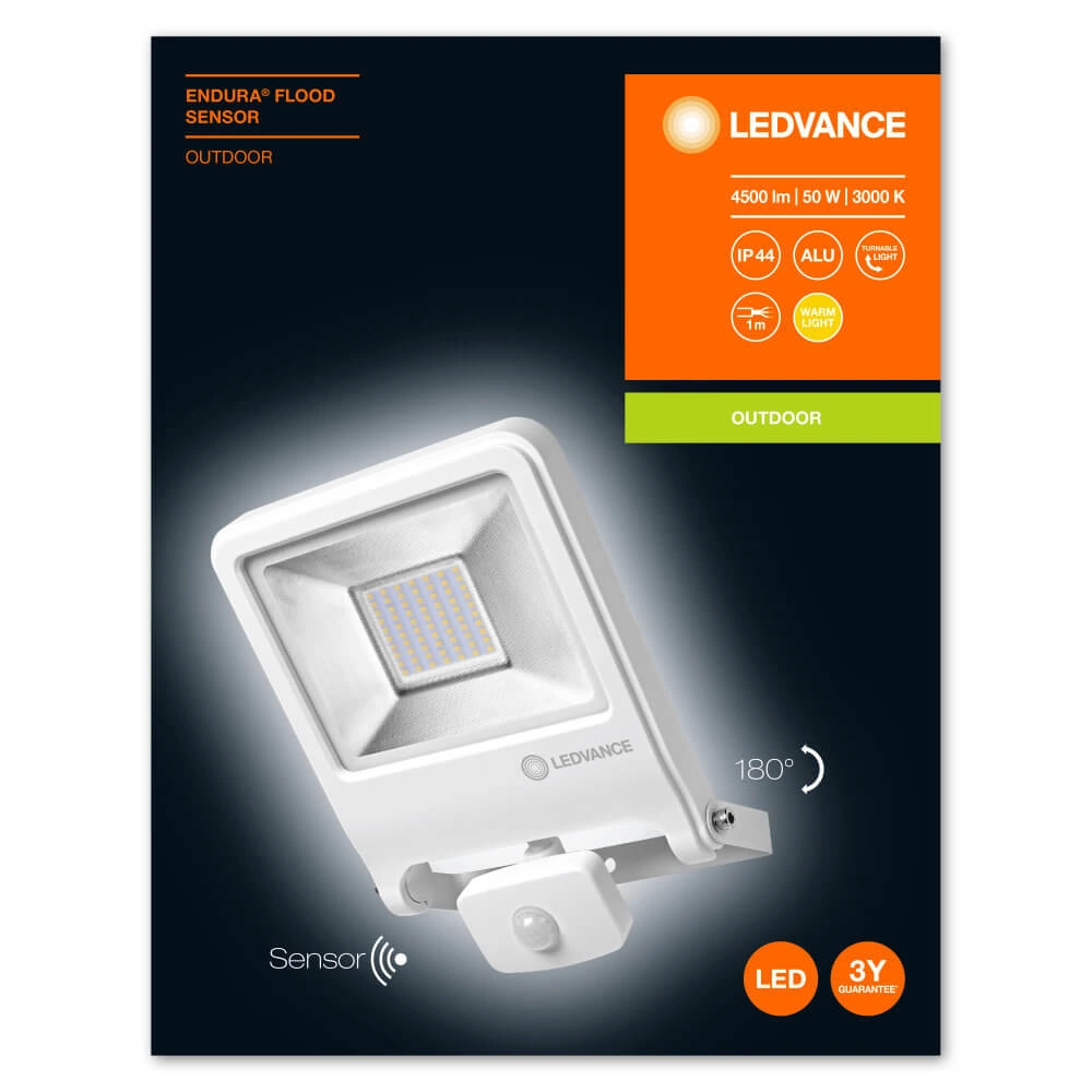 Naświetlacz LED Reflektor Zewnętrzny Lampa 50W 4500lm 3000K IP44 Biały Z Czujnikiem Ruchu i Zmierzchu Endura Ledvance