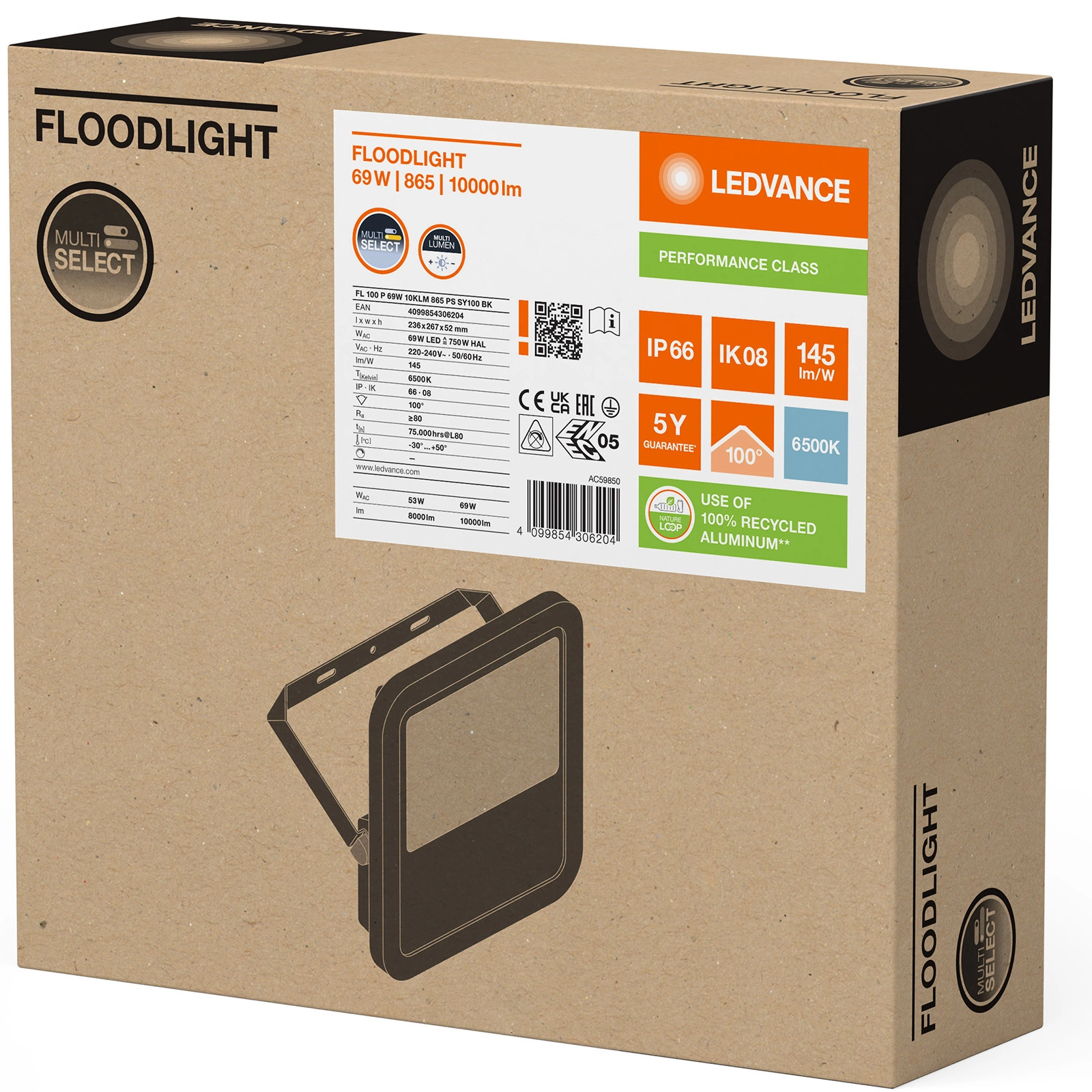 - Wysoka moc świetlna: 10000 lm przy niskim zużyciu energii 69W, gwarantując efektywność 145 lm/W.