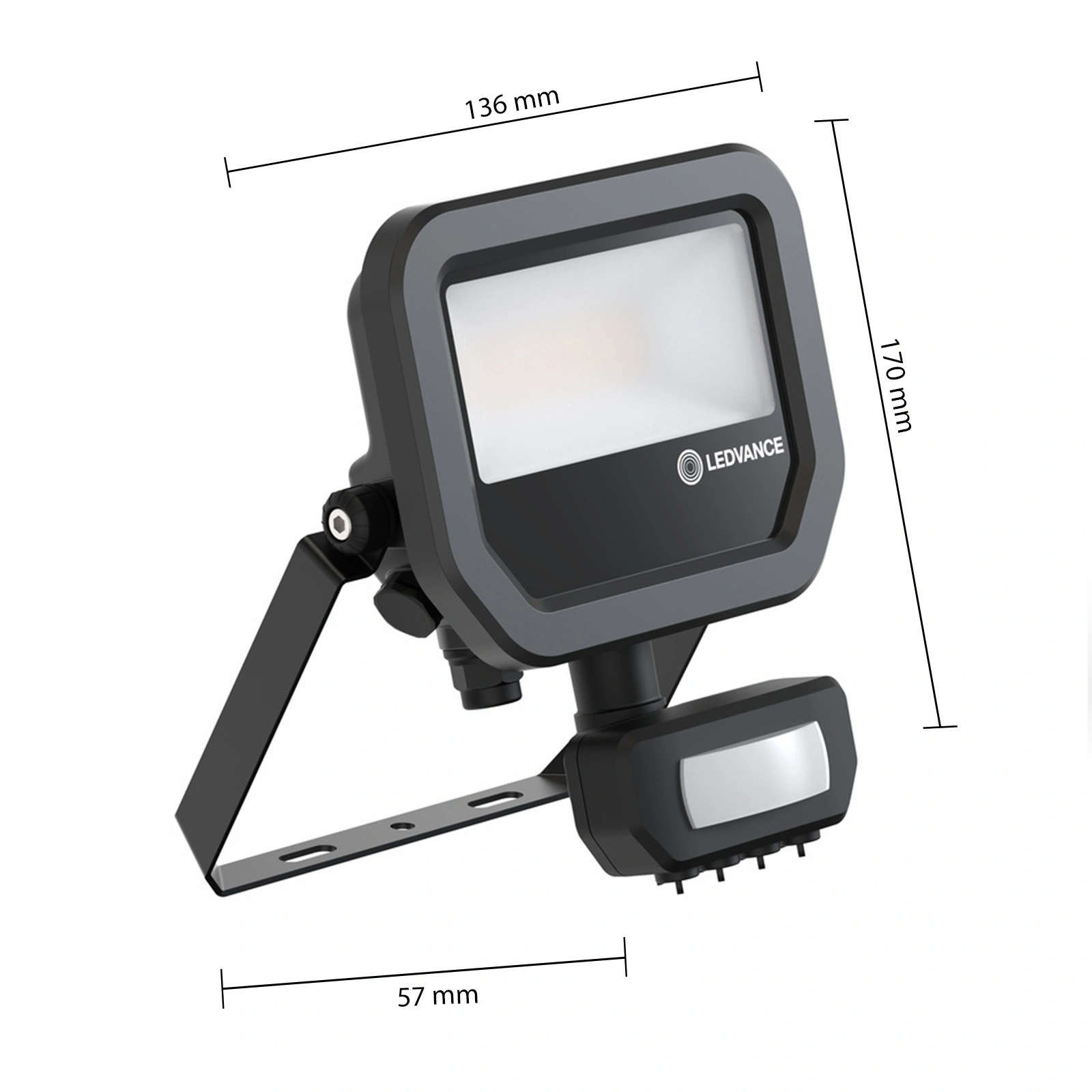 Naświetlacz LED Reflektor Zewnętrzny Lampa 10W 1200lm 4000K IP65 Czarny Z Czujnikiem Ruchu i Zmierzchu Floodlight Ledvance