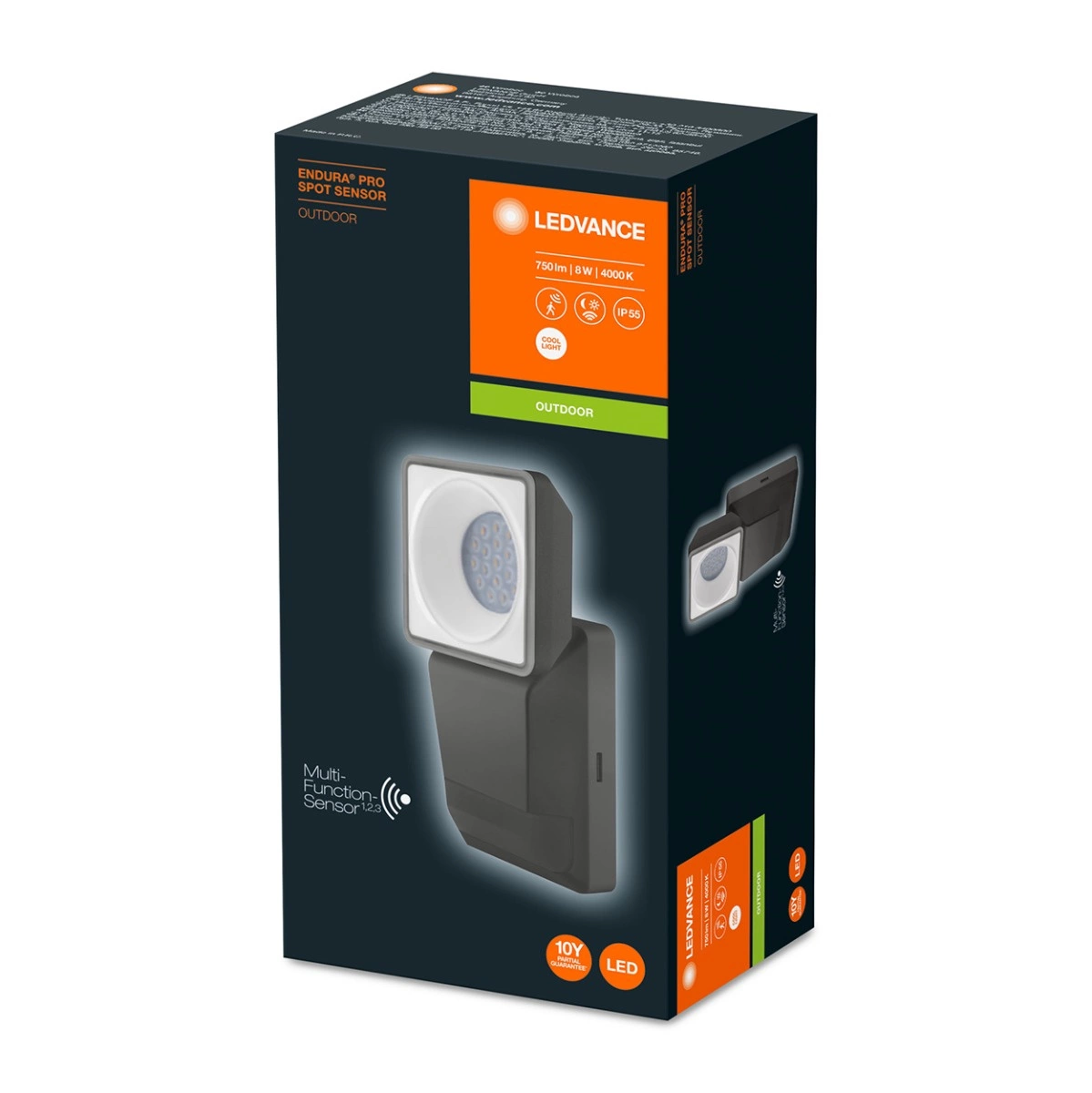 Naświetlacz LED Reflektor Zewnętrzny Lampa 8W 750lm 4000K IP55 Szary Z Czujnikiem Ruchu i Zmierzchu Endura Ledvance