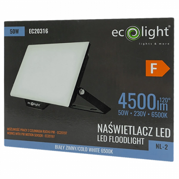 Naświetlacz LED Lampa Reflektor 50W 4500lm 6500K Zimna IP65 NL-2 Ecolight