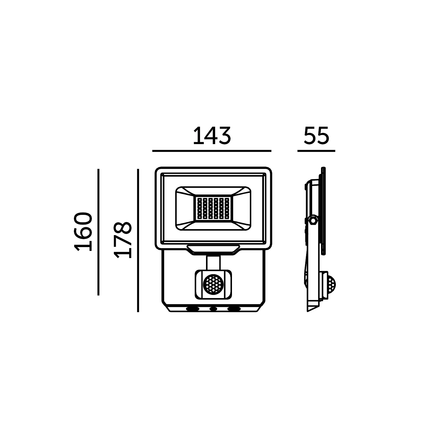 Naświetlacz LED Zewnętrzny Ogrodowy 30W 2550lm 4000K Neutralny 120° z Czujnikiem Ruchu i Zmierzchu IP65 Czarny MHC Kobi