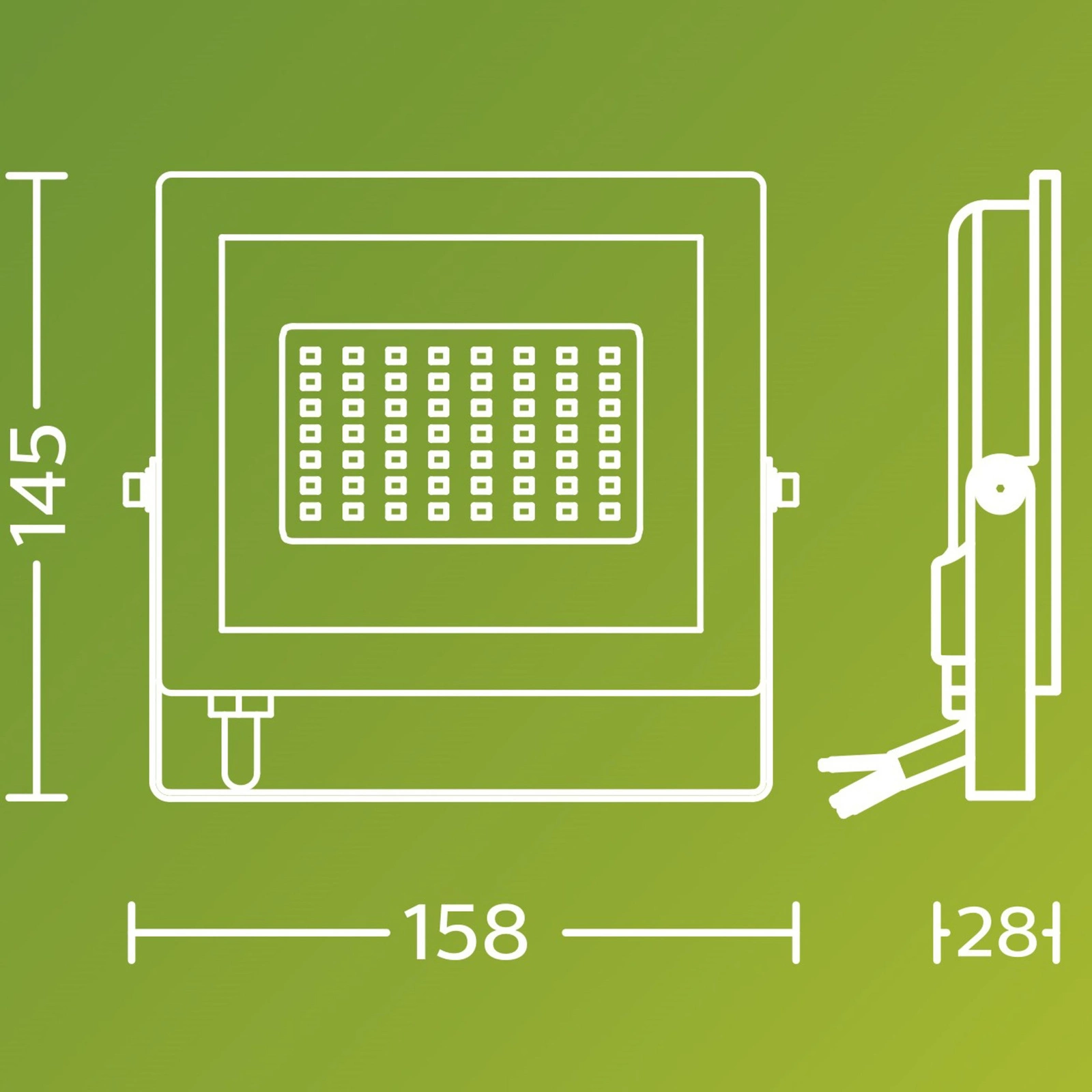 Naświetlacz LED Philips to nowoczesne i wytrzymałe źródło światła, zaprojektowane z myślą o trudnych warunkach zewnętrznych. Dzięki stopniowi ochrony IP65 jest całkowicie odporny na kurz i silne strugi wody, co czyni go idealnym wyborem do oświetlenia elewacji, ogrodów, podjazdów i tarasów. Solidna konstrukcja z wysokiej jakości aluminium i szkła zapewnia długą żywotność i niezawodność działania niezależnie od warunków atmosferycznych. Mocny i równomierny strumień światła gwarantuje doskonałą widoczność, a energooszczędna technologia LED redukuje zużycie energii.