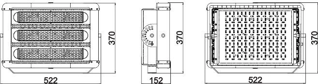 - Symetryczny rozsył strumienia świetlnego z regulacją obrotową, do oświetlenia przestrzeni z wysokich masztów