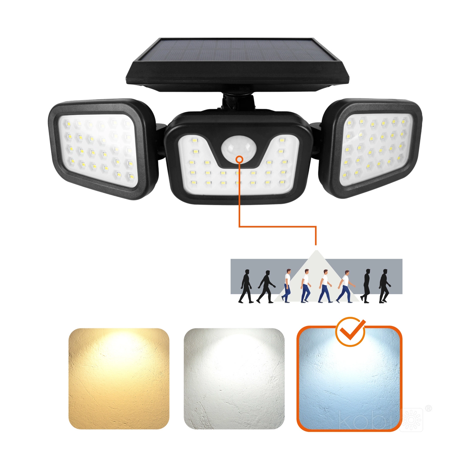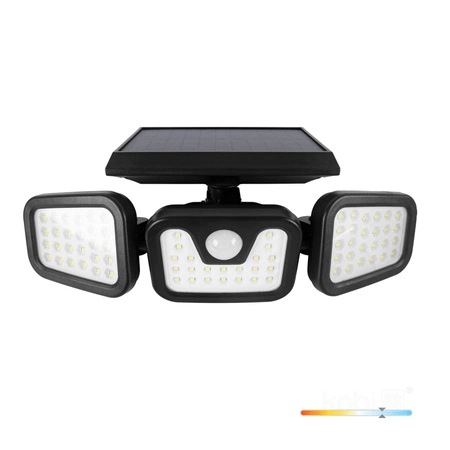 Naświetlacz LED Solarny Zewnętrzny Ogrodowy 1.5W lm 6000K Zimny z Czujnikiem Ruchu i Zmierzchu IP44 Czarny Glow Kobi