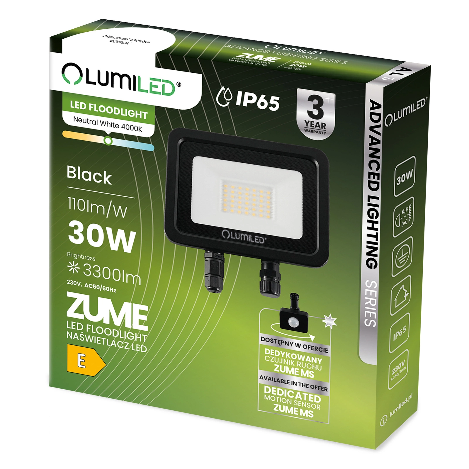 Naświetlacz LED ZUME 30W 3300lm 4000K IP65 Czarny Advanced Lighting Series LUMILED