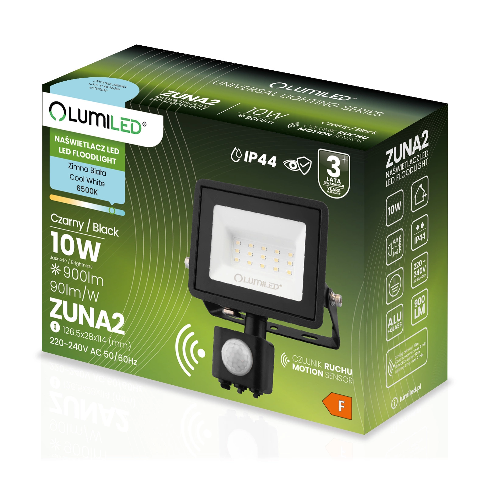 Naświetlacz LED ZUNA2 10W 900lm 6500K IP44 Czarny Czujnik Ruchu LUMILED - trzecia cecha produktu