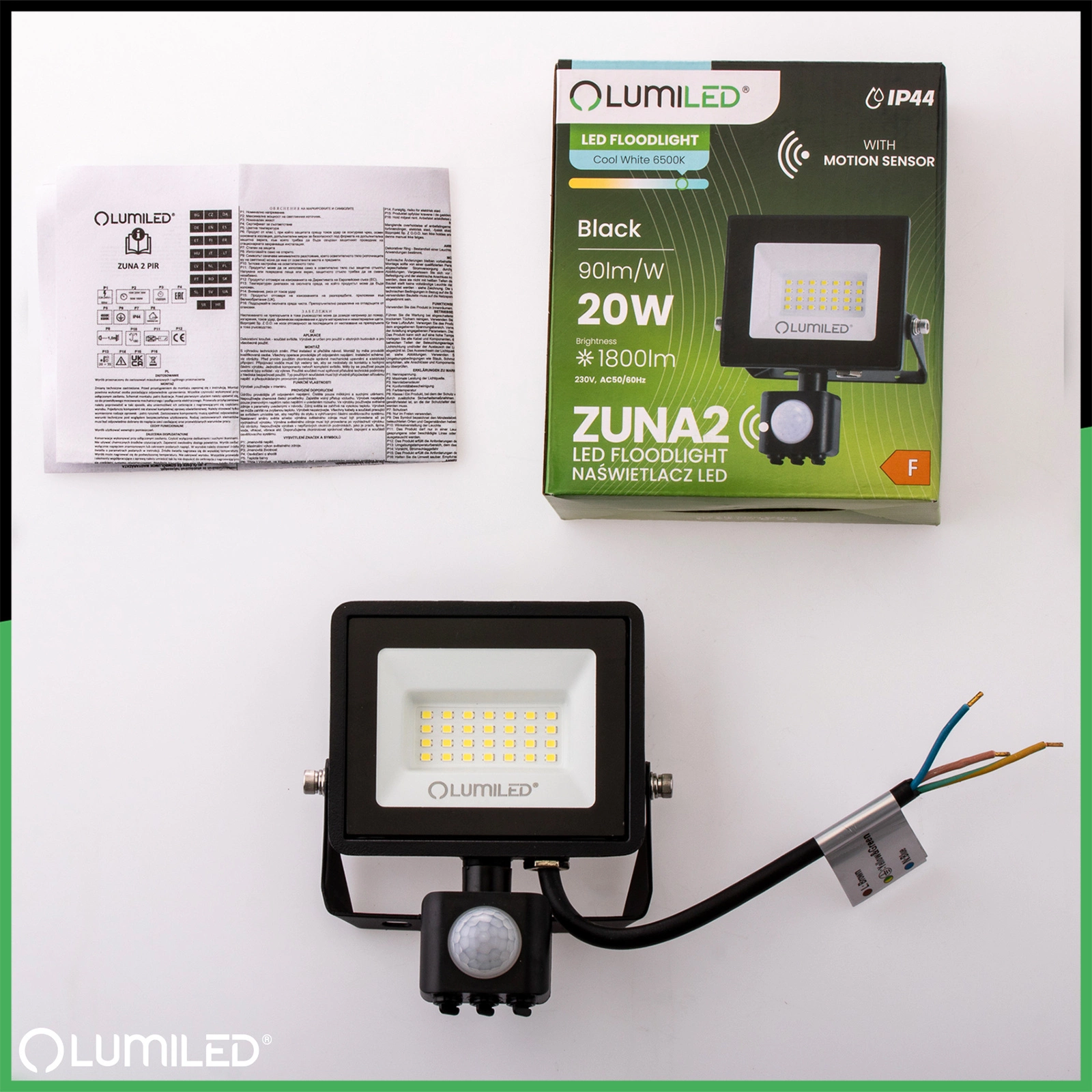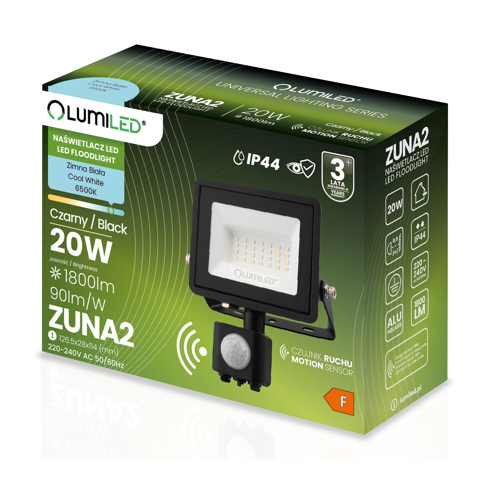 Naświetlacz LED ZUNA2 20W 1800lm 6500K IP44 Czarny Czujnik Ruchu LUMILED - pierwsza cecha produktu