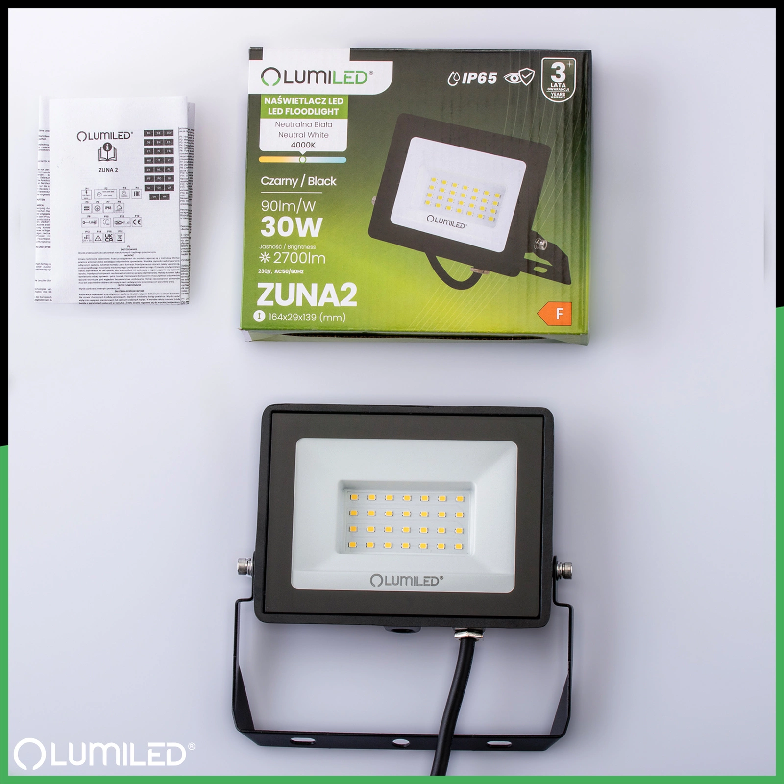 Naświetlacz LED ZUNA2 30W 2700lm 4000K IP65 Czarny LUMILED