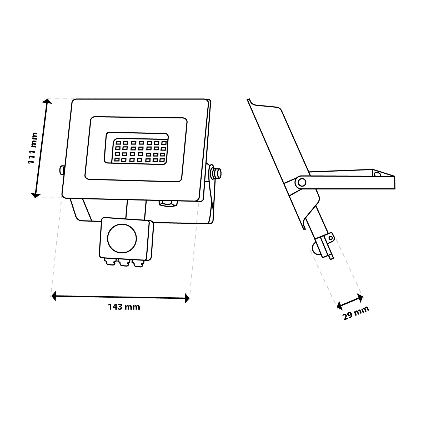 Naświetlacz LED ZUNA2 30W 2700lm 6500K IP44 Czarny Czujnik Ruchu LUMILED - druga cecha produktu