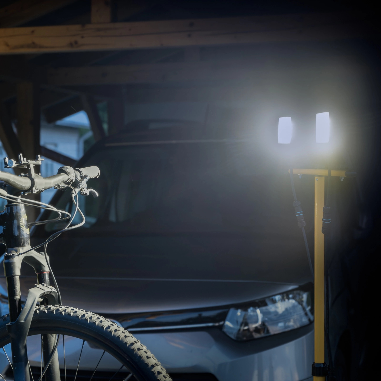Dwa niezależne naświetlacze po 20W zapewniają szerokie, równomierne światło – bez cieni, prześwietleń i konieczności ciągłego przestawiania lampy. Pracujesz szybciej, bezpieczniej i z lepszą widocznością, nawet w trudnych warunkach. To rozwiązanie, które zwiększa efektywność i ułatwia każde zadanie. Niezależnie od miejsca – masz zawsze do dyspozycji niezawodne światło robocze.