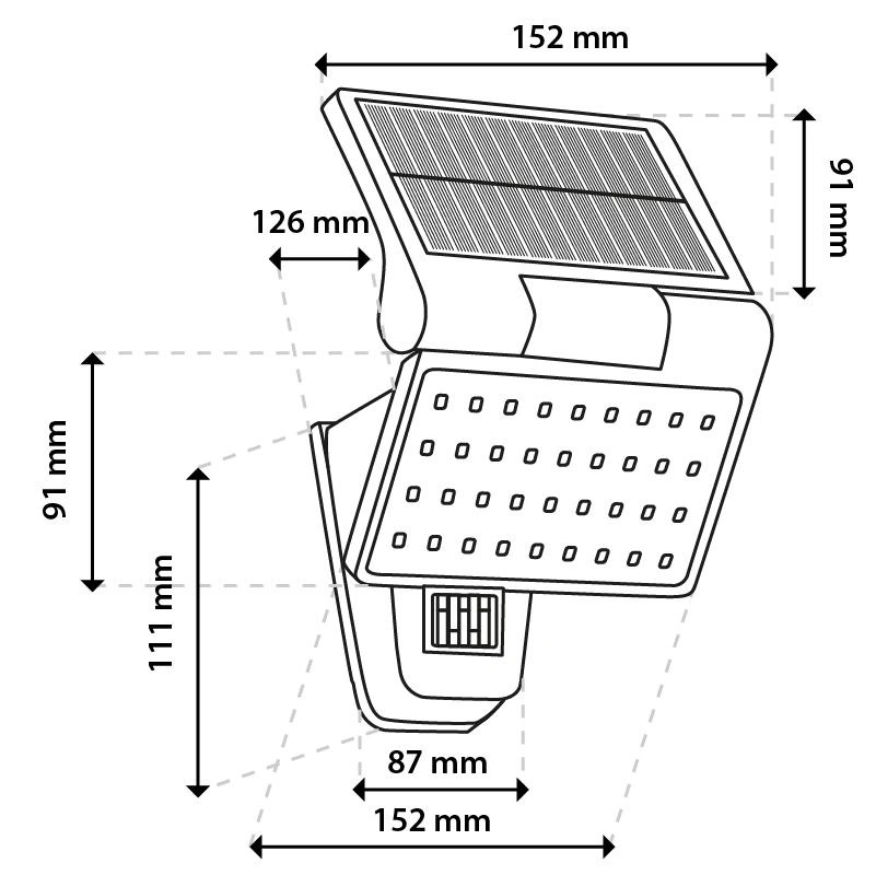 Montaż przedstawionego naświetlacza jest szybki i wygodny, dzięki natynkowemu systemowi instalacji, może być zamontowany na dowolnej płaskiej powierzchni, np. na elewacji budynku. Został zaprojektowany z myślą o maksymalnej elastyczności, dlatego zarówno panel solarny, jak i lampa posiadają możliwość regulacji do 180°. Dzięki temu możesz precyzyjnie ustawić kąt padania światła oraz optymalnie skierować panel w stronę słońca, aby zwiększyć efektywność ładowania.
