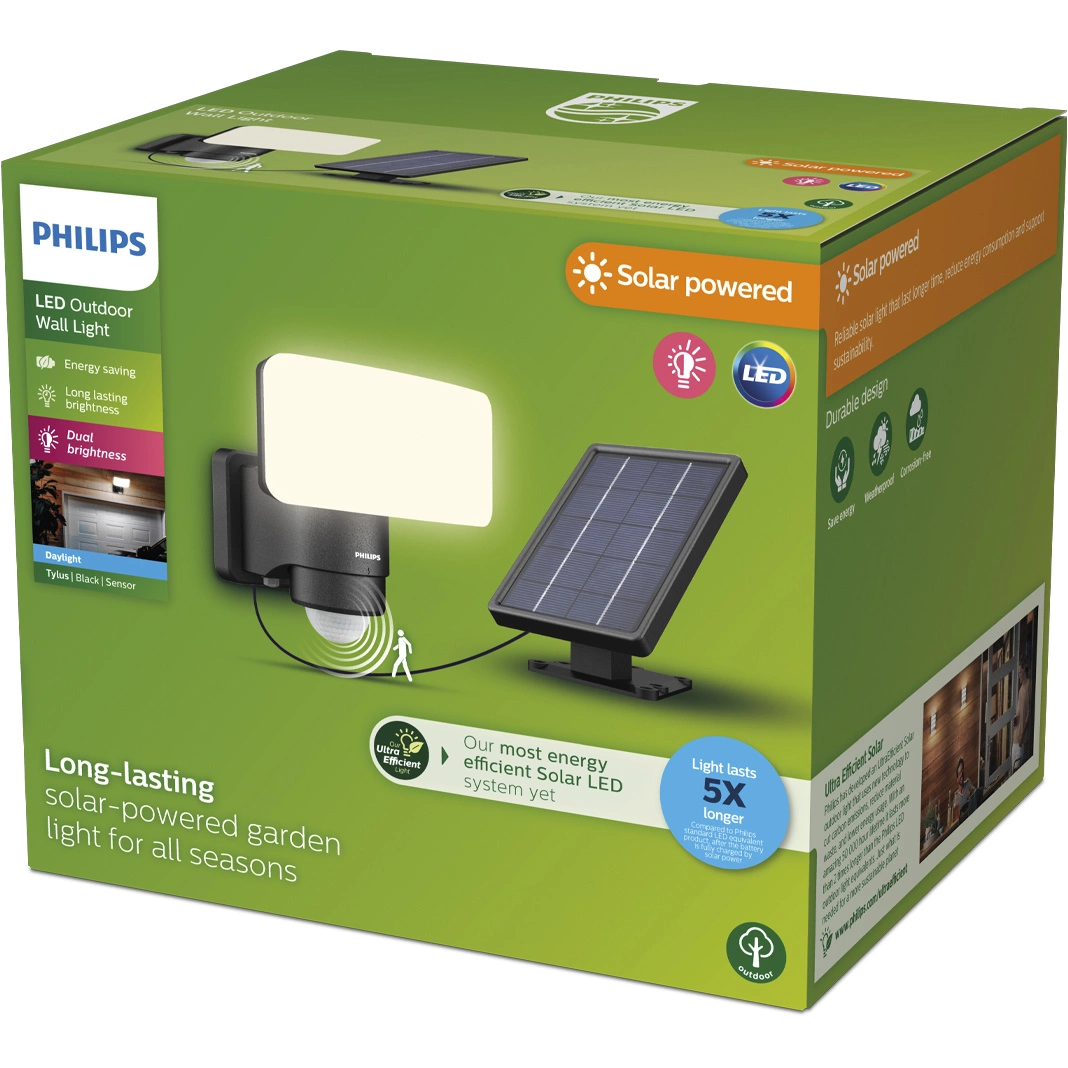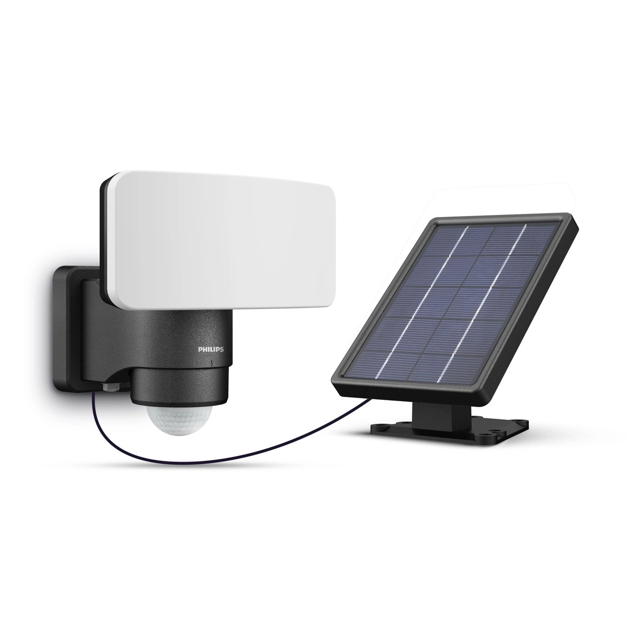 Solidna czarna konstrukcja z matowym wykończeniem jest nie tylko estetyczna, ale także odporna na trudne warunki dzięki klasie ochrony IP44. Zasilanie solarne oraz akumulator litowo-jonowy o pojemności 2600 mAh gwarantują niezawodność i długowieczność działania. To nowoczesne rozwiązanie łączy innowacyjną technologię Philips z proekologicznym myśleniem, a jego łatwy montaż natynkowy pozwala na szybką instalację w dowolnym miejscu. Przykładając wagę do detali, naświetlacz został zaprojektowany tak, aby w pełni spełniać Twoje oczekiwania względem energooszczędnego i trwałego oświetlenia zewnętrznego.