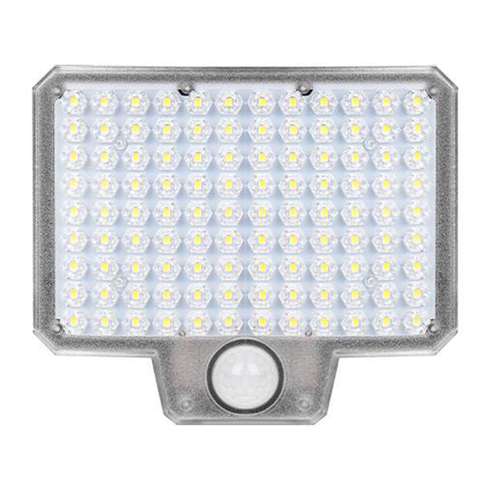 Naświetlacz solarny LED wraz z czujnikami zmierzchu i ruchu to wydajne i ekologiczne oświetlenie zewnętrzne, które wykorzystuje energię słoneczną do ładowania wbudowanego akumulatora. Naświetlacz wyposażony jest w 108 diod SMD, które zapewniają jasne i równomierne oświetlenie, idealne do oświetlenia podjazdów, ogrodów, czy chodników. Dzięki wbudowanemu czujnikowi ruchu PIR lampa włącza się automatycznie w momencie wykrycia ruchu, co zwiększa bezpieczeństwo i komfort użytkowania. Produkt cechuje się łatwością montażu oraz trwałą, wodoodporną obudową, co gwarantuje długą żywotność nawet w trudnych warunkach atmosferycznych.