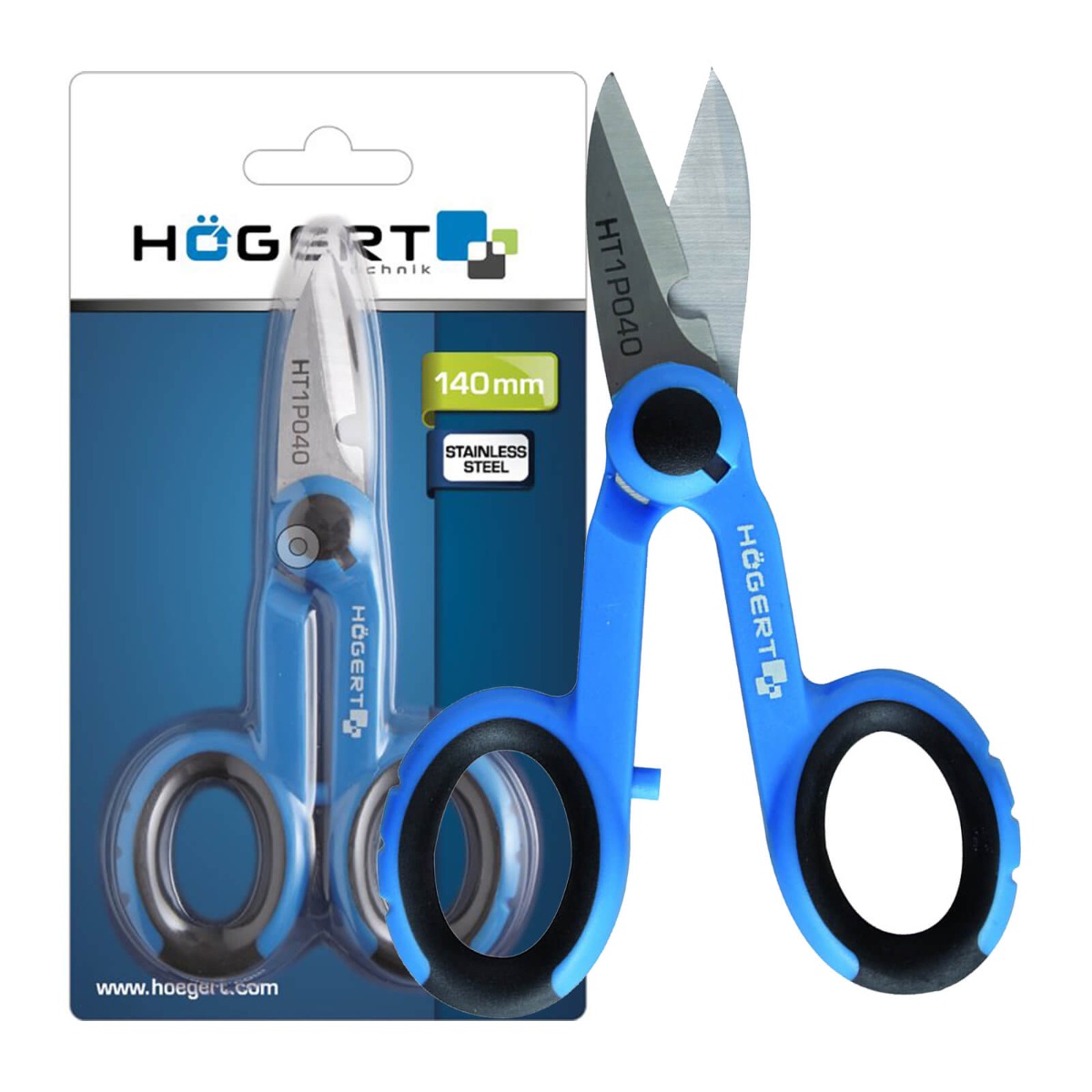 Nożyce renomowanej firmy Hoegert Technik przeznaczone do przecinania izolacji, przewodów cienkich, kabli blachy, tworzywa sztucznego skóry itp. Niezwykle trwałe i wytrzymałe nożyce zostały wykonane ze stali nierdzewnej o twardości 48-52 hrc oraz wzmocnione, ząbkowane krawędzie tnące zapobiegają wyślizgiwaniu się ciętych przewodów. W jednym z ostrzy znajduje się specjalne nacięcie ułatwiające przecięcie przewodów. Całości dopełnia ergonomiczny i bimateriałowy uchwyt zapewniający pewny stabilny chwyt.