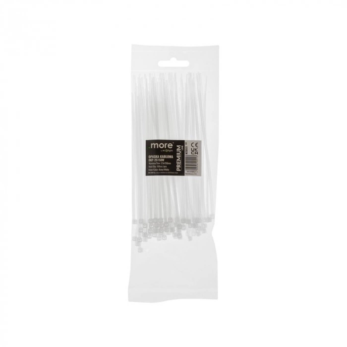 Przedstawiamy profesjonalne rozwiązanie dla każdego majsterkowicza i elektryka - Opaski Zaciskowe Kablowe o wymiarach 2.5x150 mm w kolorze białym. Te niezwykle wytrzymałe i wszechstronne opaski zaciskowe marki PREMIUM są znane również jako trytytki, trytki lub ziperki. Świetnie sprawdzą się w organizacji przewodów, kabli oraz różnorodnych elementów konstrukcyjnych, zarówno w domu, jak i w profesjonalnych warsztatach. Dzięki wykonaniu z tworzywa sztucznego spełniającego normy CE oraz RoHS, gwarantują najwyższy poziom bezpieczeństwa i niezawodności.