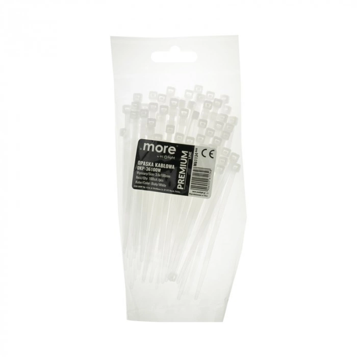 Opaski Zaciskowe Kablowe 3.6x100 mm Białe TRYTYTKI TRYTKI ZIPERKI PREMIUM OKP-36100B .MORE 100 szt.