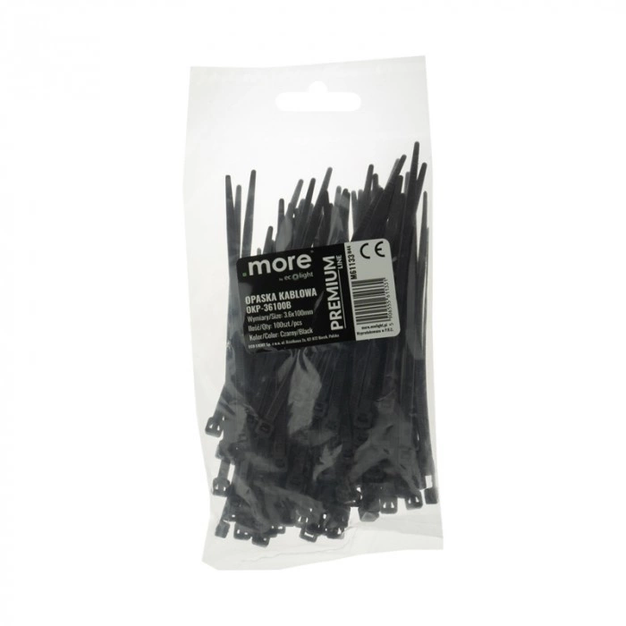 Opaski Zaciskowe Kablowe 3.6x100 mm Czarne UV TRYTYTKI TRYTKI ZIPERKI PREMIUM OKP-36100W .MORE 100 szt.
