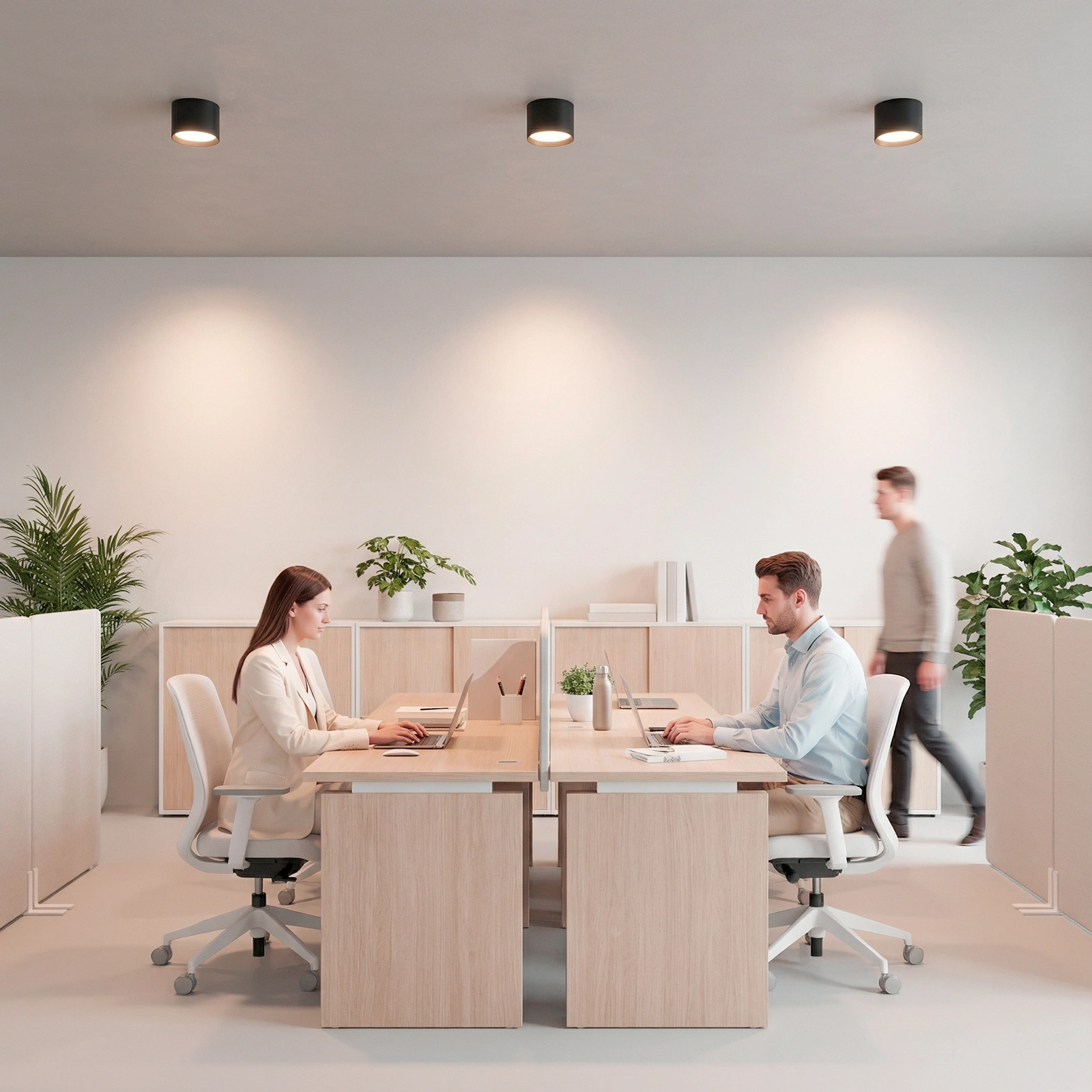 Konstrukcja oprawy została zaprojektowana z myślą o szybkim i bezproblemowym montażu natynkowym, który nie wymaga ingerencji w sufit ani dodatkowych prac. Dzięki temu możesz łatwo zaplanować oświetlenie sufitowe tam, gdzie oprawy wpuszczane się nie sprawdzają, oszczędzając czas i unikając remontu. Natynkowa forma pozwala swobodnie rozmieścić punkty świetlne, poprawia funkcjonalność wnętrza i zapewnia estetyczny, spójny efekt wizualny.