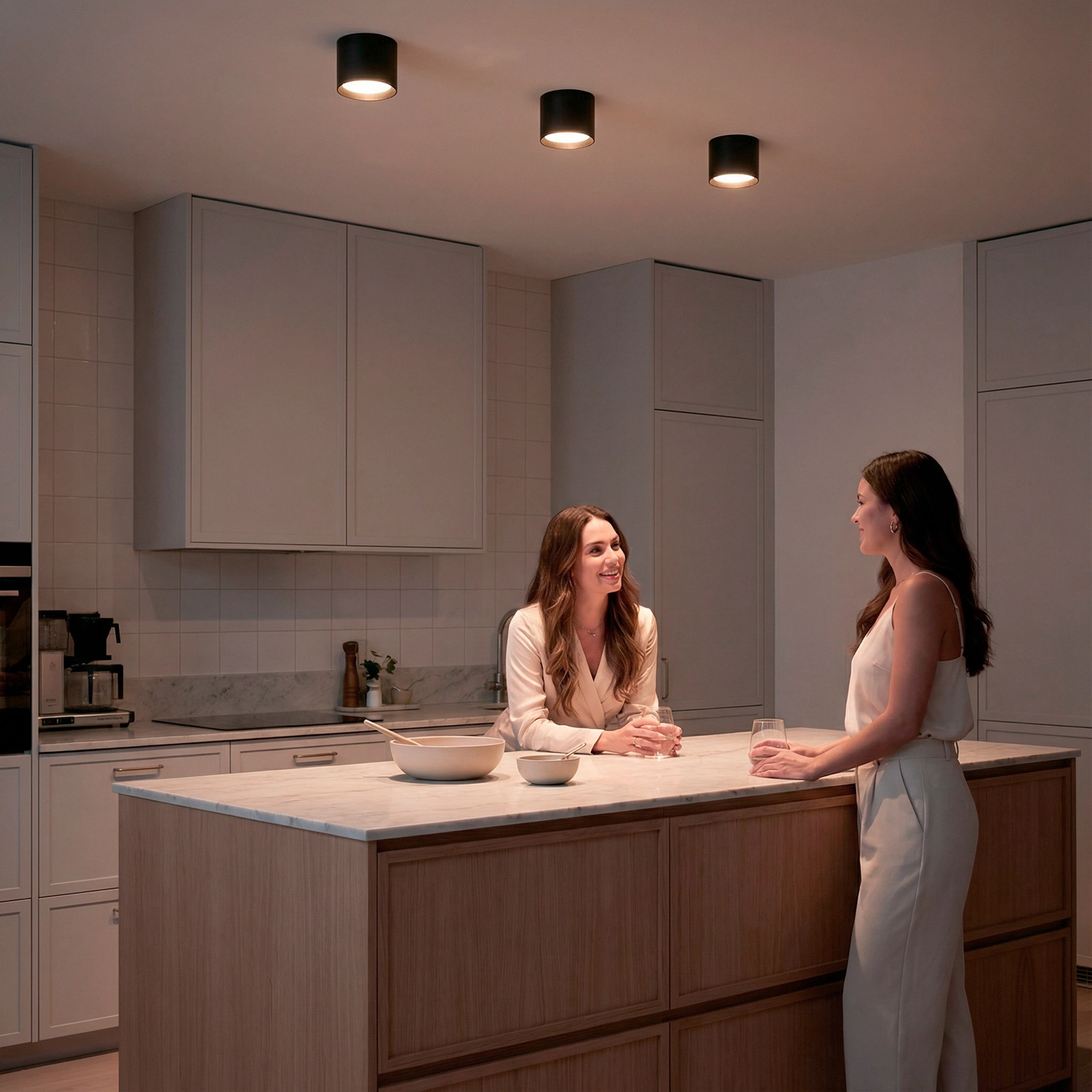 Standardowy trzonek GX53 pozwala łatwo dopasować światło do codziennych potrzeb i sposobu użytkowania pomieszczenia. Możesz swobodnie wybrać barwę oraz intensywność światła, uzyskując komfortowe warunki do pracy, odpoczynku lub stworzenia przyjemnej atmosfery. Dzięki tej elastyczności oświetlenie może zmieniać się razem z rytmem dnia i oczekiwaniami domowników.