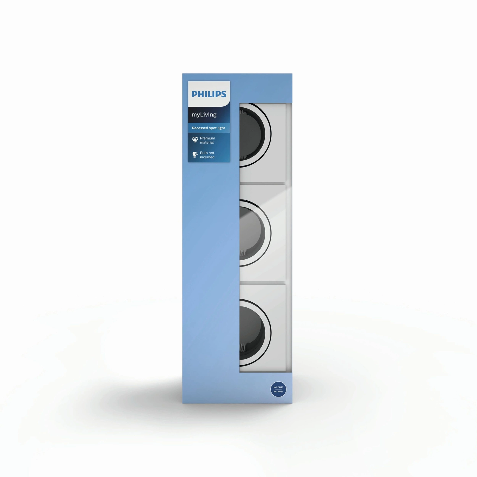 Ta lampa jest dostarczana bez żarówki, dzięki czemu możesz wybrać strumień świetlny, który najlepiej pasuje do pomieszczenia i Twoich osobistych upodobań. Dzięki nowemu, przyjaznemu dla użytkownika pierścieniowi z łatwością wymienisz lampę na oprawę GU10.