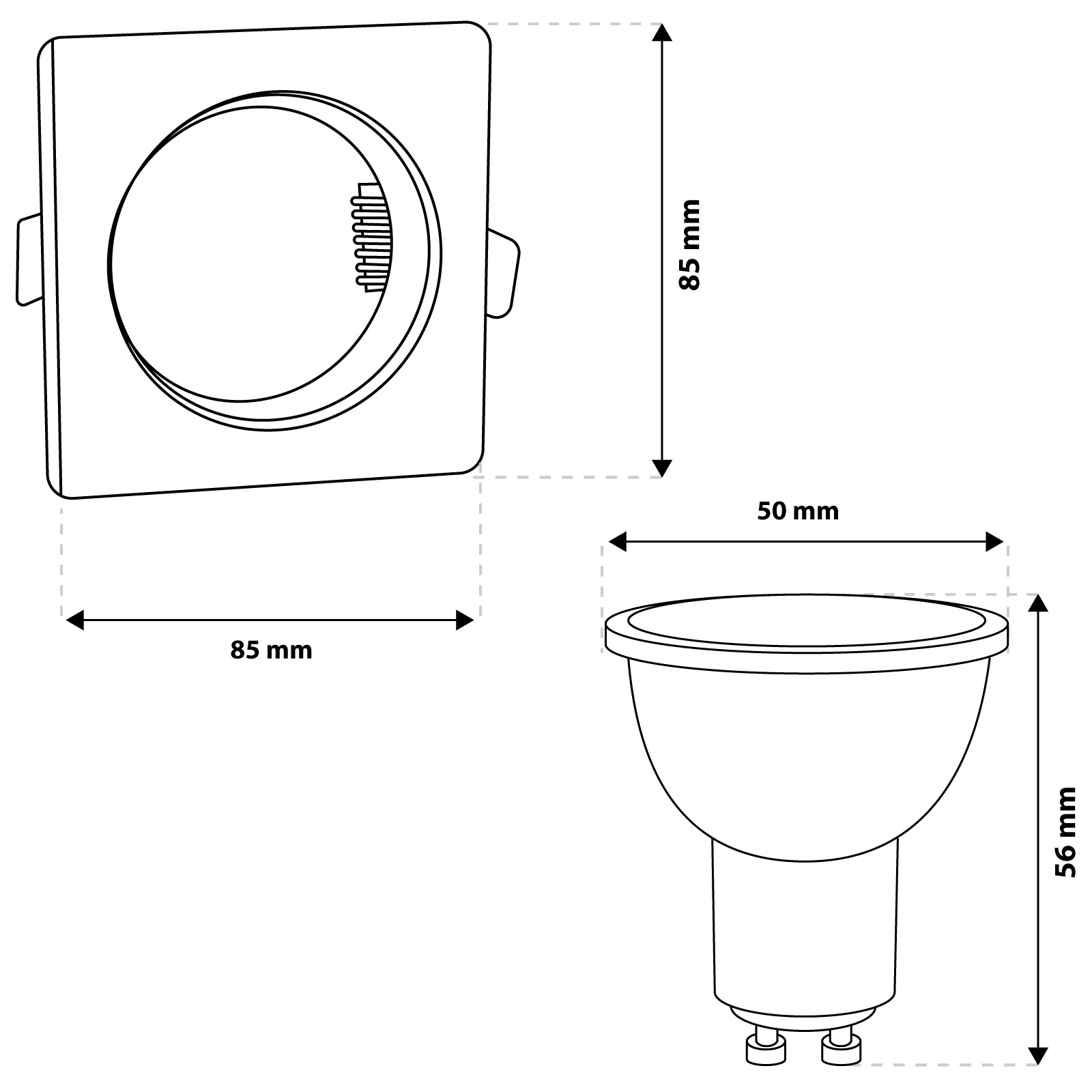 Oprawa Halogenowa Podtynkowa Kwadratowa Ruchoma TRIX 3w1 GU10 6W 3000K Czarny LUMILED - skład produktu