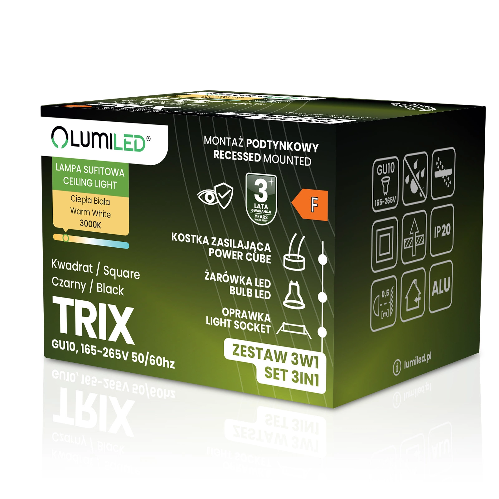 Oprawa Halogenowa Podtynkowa Kwadratowa Ruchoma TRIX 3w1 GU10 6W 3000K Czarny LUMILED - trzecia cecha produktu