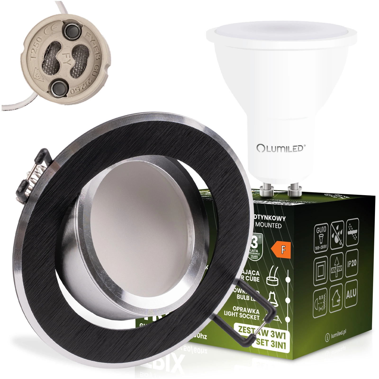 Oprawa Halogenowa Podtynkowa Okrągła Ruchoma TRIX 3w1 GU10 6W 4000K Czarny LUMILED