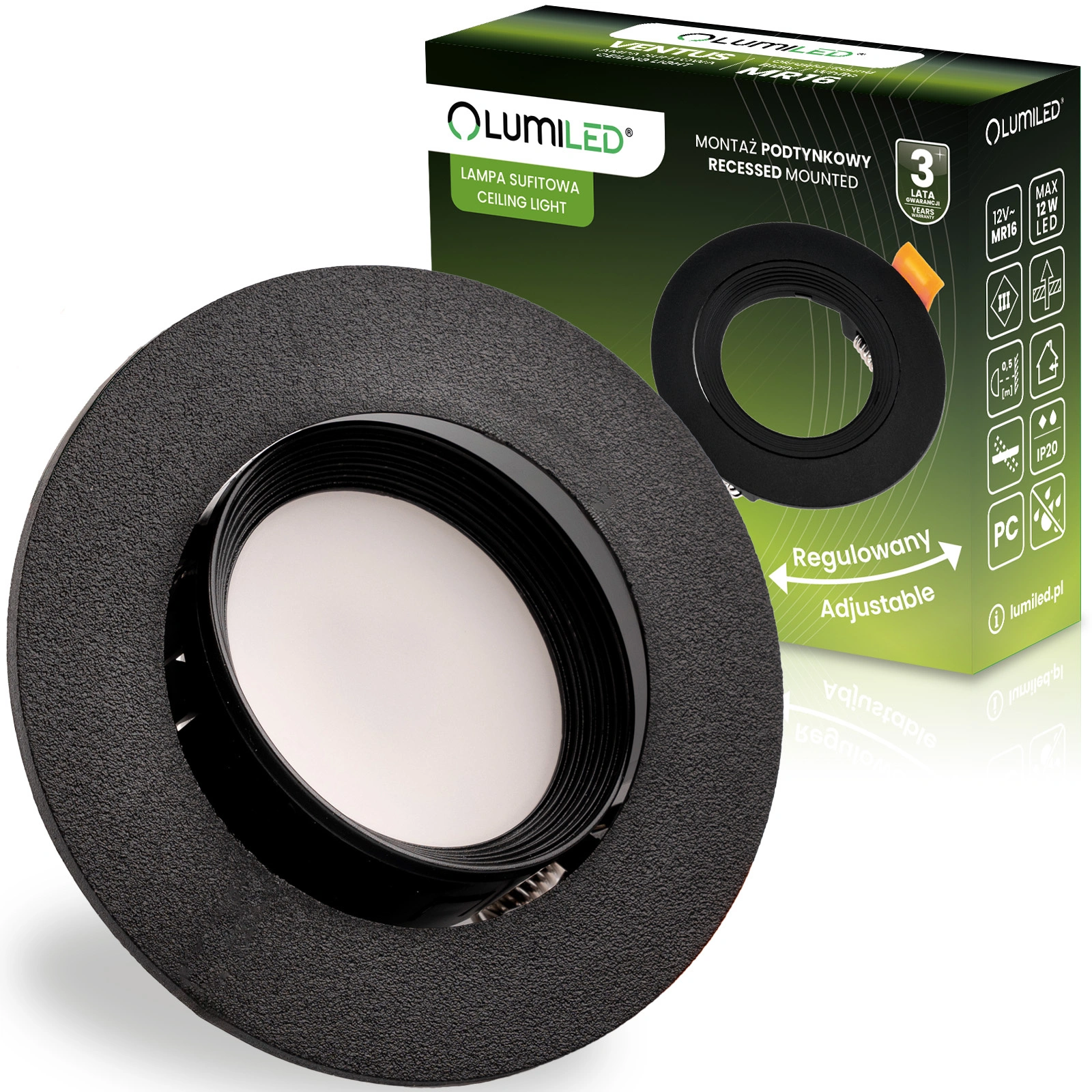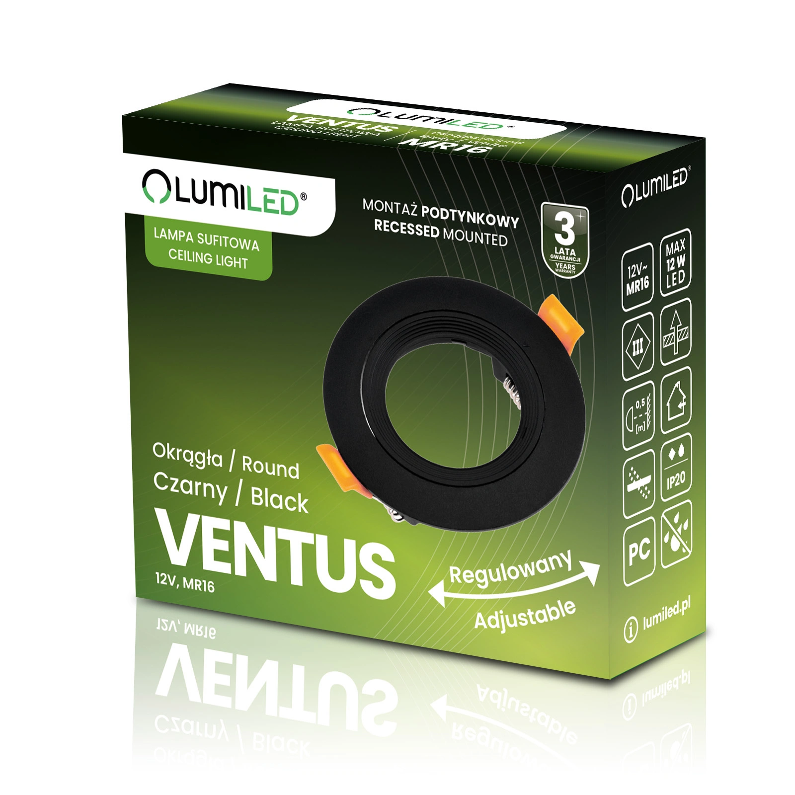 Oprawa Halogenowa Podtynkowa Ruchoma Okrągła Czarna GU10 MR16 VENTUS Lumiled
