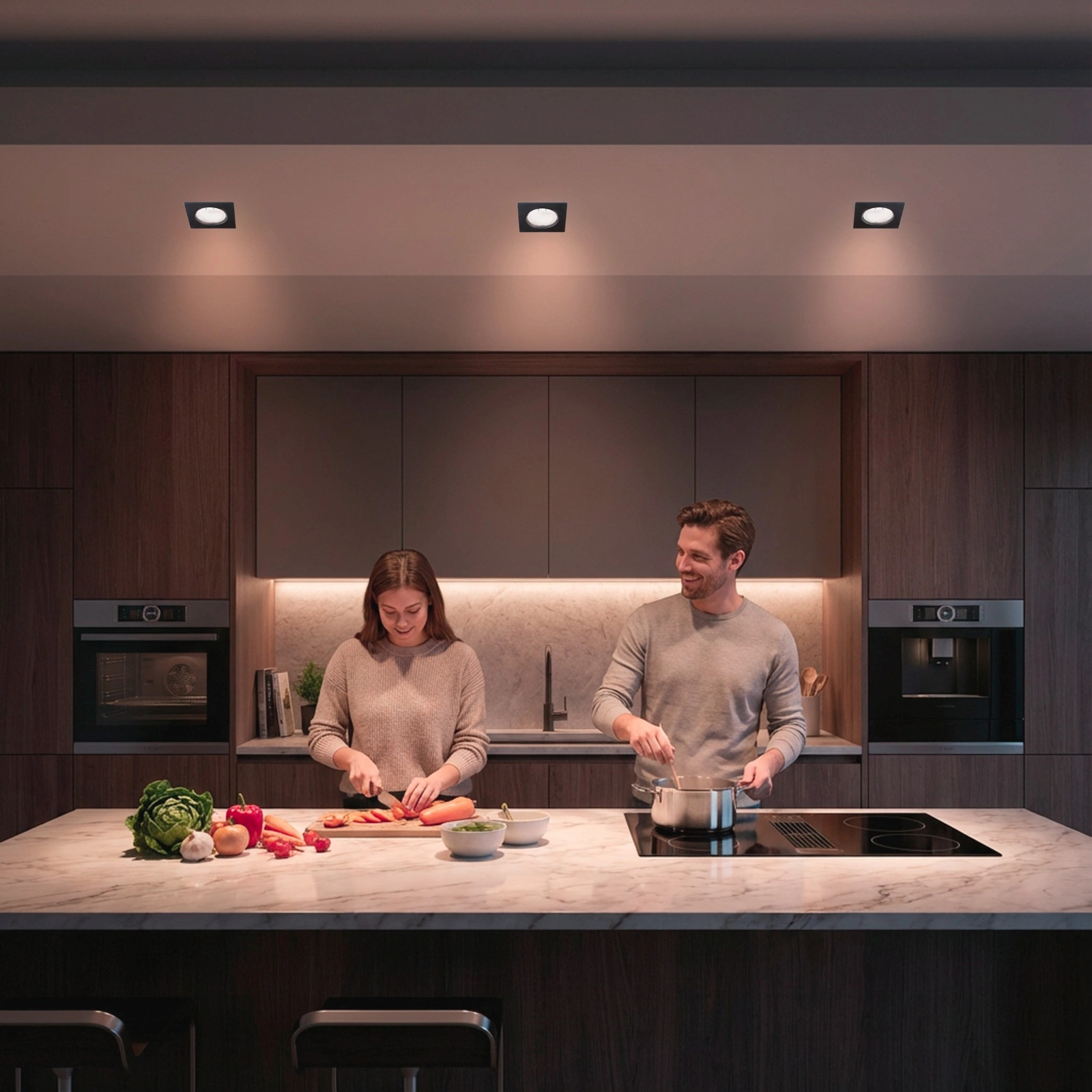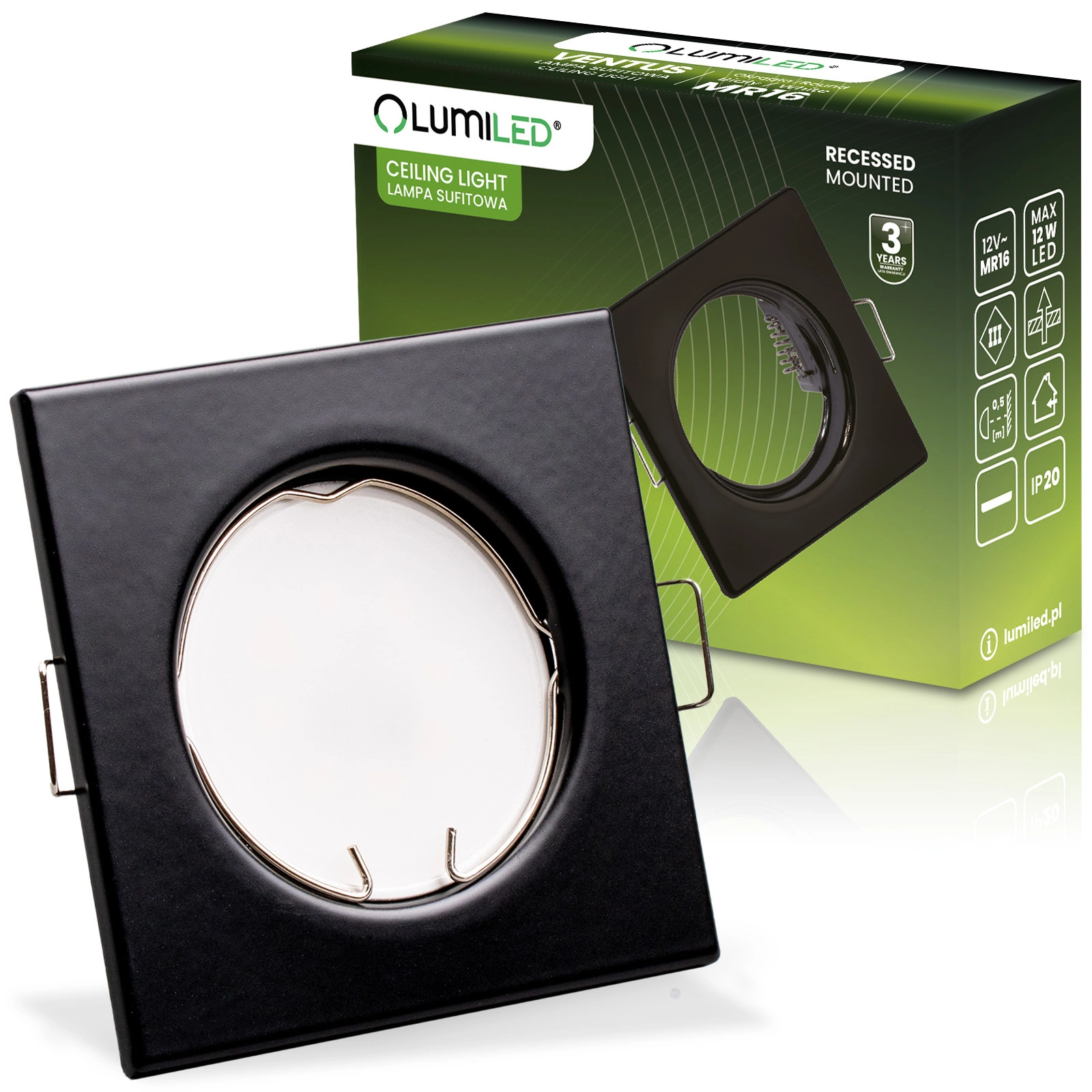 Kwadratowa Oprawa Halogenowa stała w kolorze Czarnym marki Lumiled, została wykonana z wysokiej jakości stali. Oprawa została przystosowana do montażu podtynkowego, w połączeniu z dobrą Żarówką LED może służyć do podświetlenia dekoracyjnego, jak i do oświetlenia ogólnego w większych otwartych pomieszczeniach, gdzie zastosowanie pojedynczego źródła światła okazuje się niewystarczające, a dzięki swojemu nowoczesnemu wyglądowi swoje zastosowanie znajdzie w każdych nowocześnie urządzonych mieszkaniach, domach czy też eleganckich biurach.