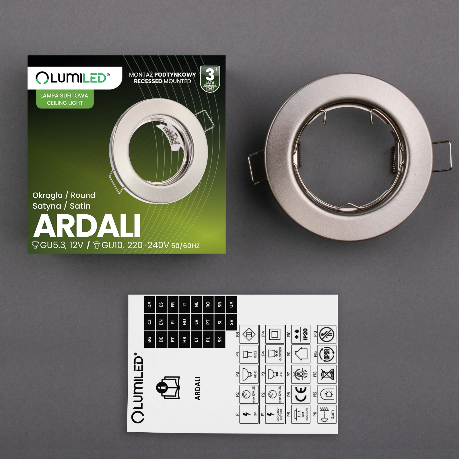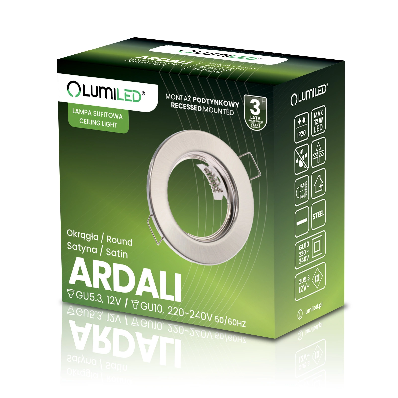 Oprawa Halogenowa Podtynkowa Okrągła Satyna GU10 MR16 ARDALI LUMILED