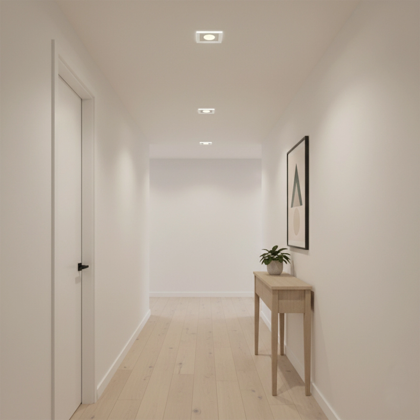 • Montaż podtynkowy gwarantuje estetyczne wykończenie – oprawa pozostaje niemal niewidoczna, a wnętrze zyskuje spójny i elegancki charakter.