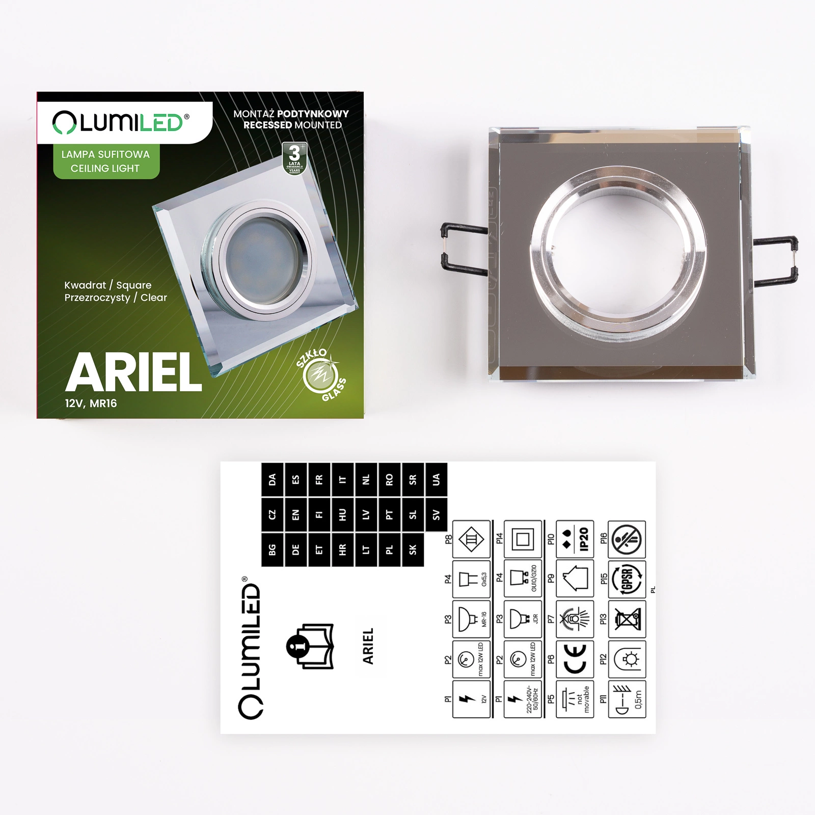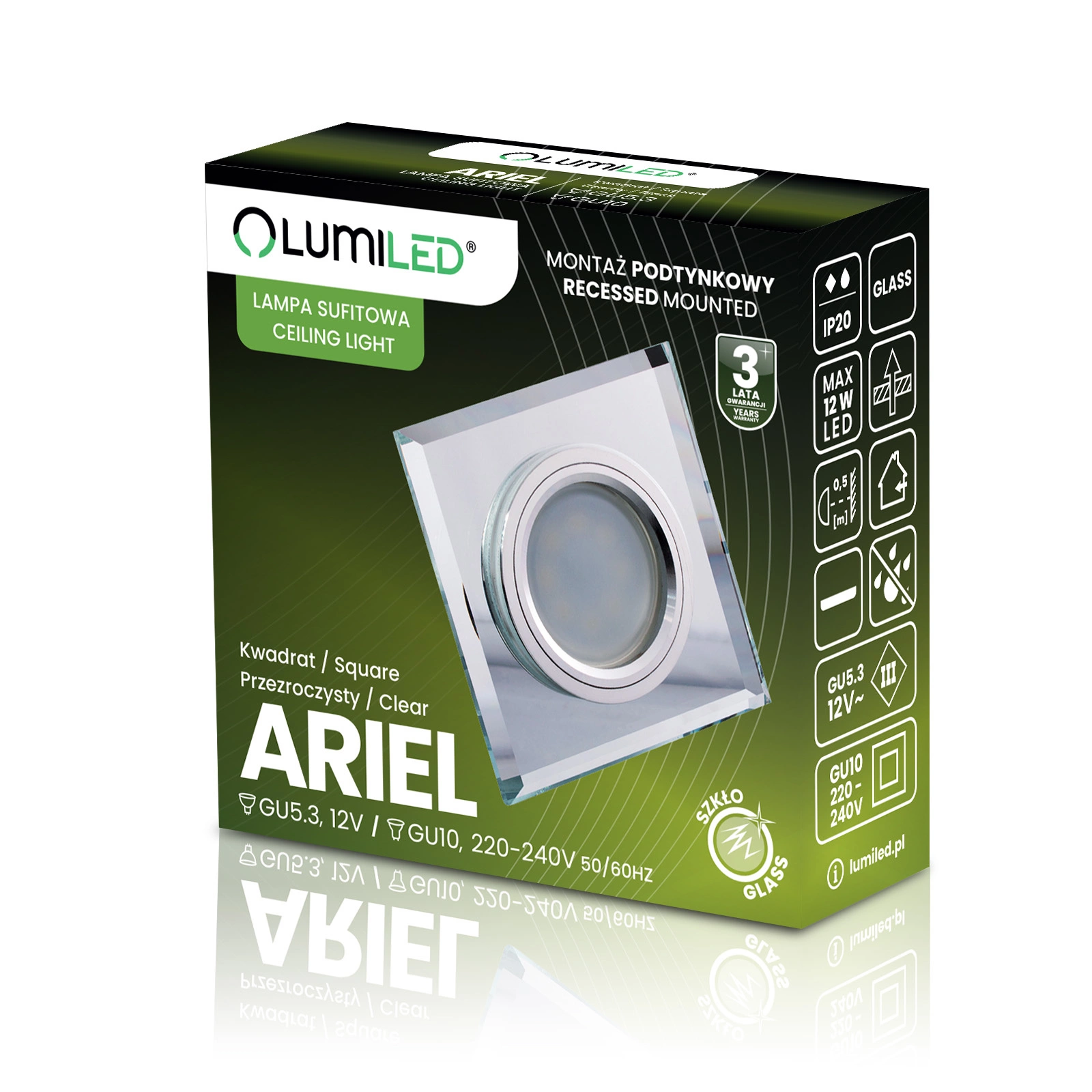 Oprawa Halogenowa SZKLANA Sufitowa LED GU10 MR16 Stała Ariel Przeźroczysta Kwadratowa - skład produktu