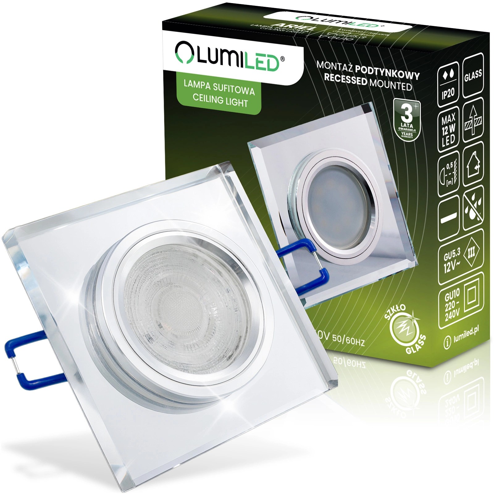 Oprawa Halogenowa SZKLANA Sufitowa LED GU10 MR16 Stała Ariel Przeźroczysta Kwadratowa - trzecia cecha produktu