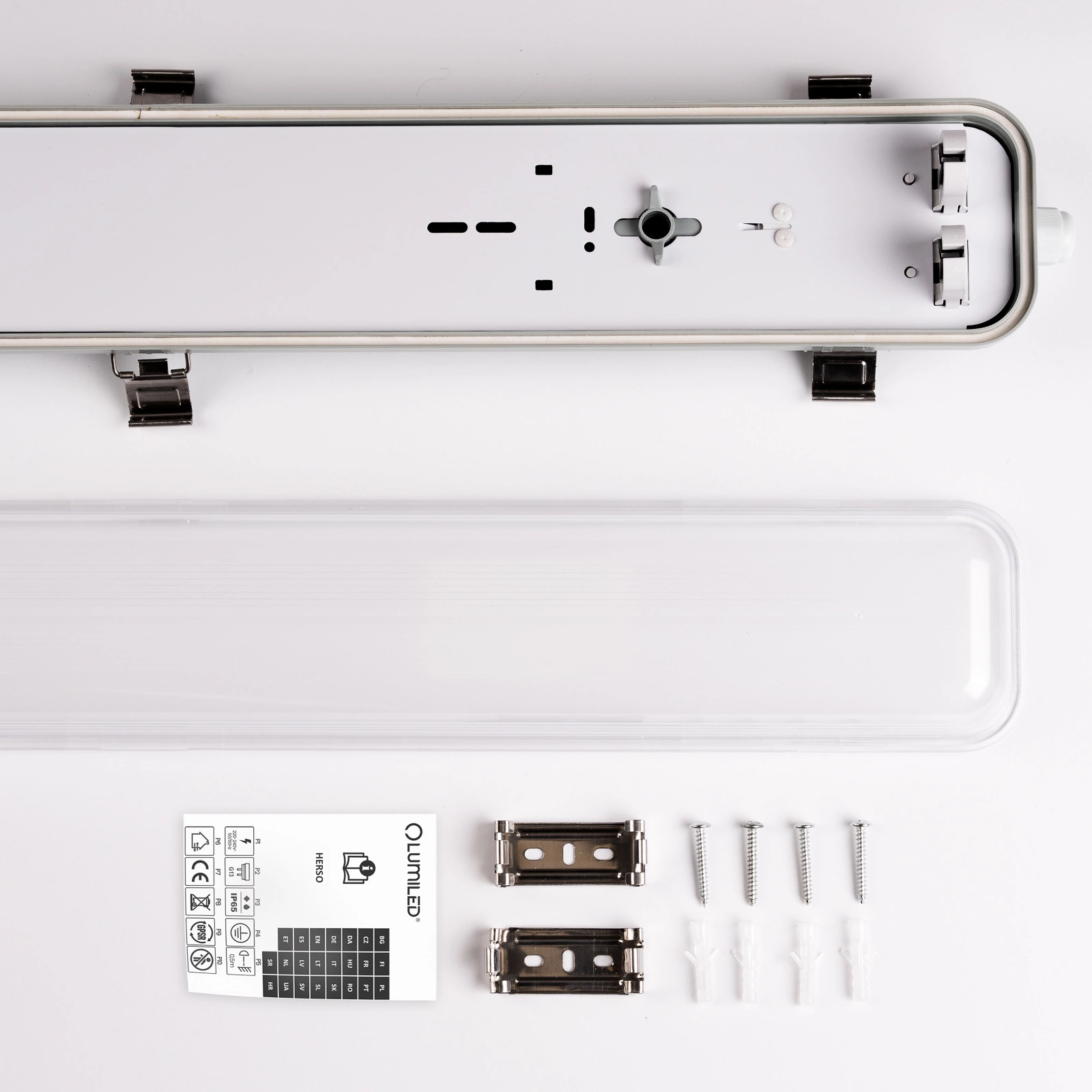 Hermetyczna oprawa LUMILED HERSO została stworzona z myślą o pracy w wymagającym środowisku. Obudowa IP65 skutecznie chroni przed wilgocią, kurzem i pyłem, a odporność mechaniczna IK08 zabezpiecza konstrukcję przed uderzeniami i uszkodzeniami. Dzięki temu oprawa idealnie sprawdza się w garażach, warsztatach i halach przemysłowych. Solidne wykonanie gwarantuje trwałość i niezawodność przez lata. To pewny wybór dla tych, którzy szukają oświetlenia na lata, bez potrzeby ciągłych wymian.