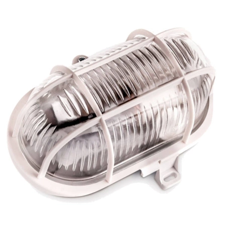Oprawa LED E27 KANAŁOWA Lampa Garażowa Owal 60W Siatka Plastik IP44 Biała KOBI