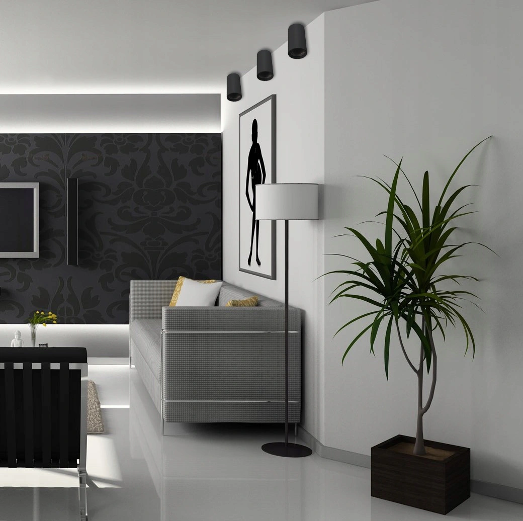 Oprawa natynkowa stała typu SPOT w kolorze czarny mat renomowanej i uznanej w branży oświetleniowej firmy MASTERLED. Oprawa została wyposażona w popularny trzonek (gwint) GU10. Zastosowany trzonek umożliwia dobrania żarówek LED i tradycyjnych odpowiedniej mocy i barwy światła wedle naszych potrzeb, jednakże maksymalna moc źródła światła nie może przekraczać 35W LED.