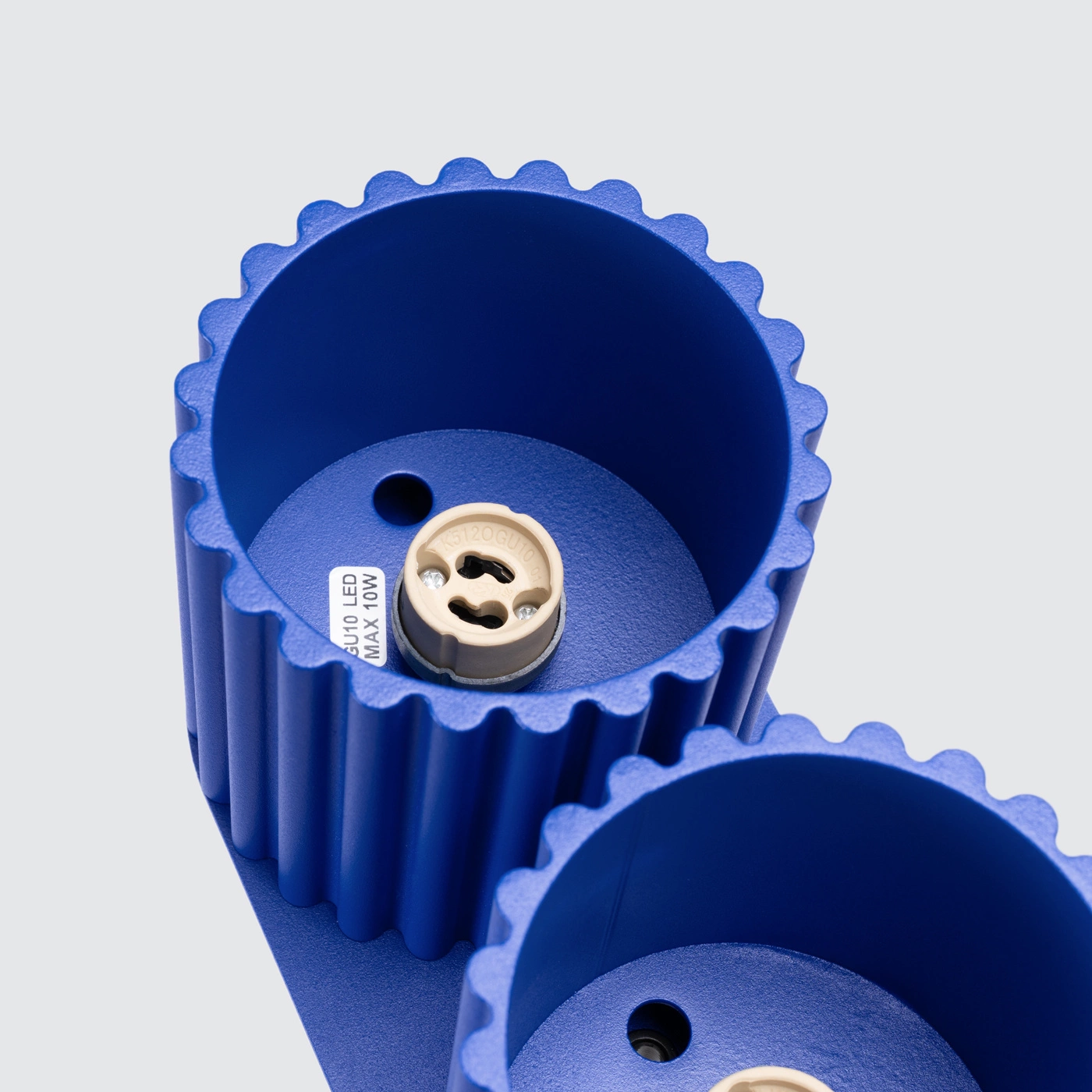 Oprawa przystosowana jest do montażu natynkowego i wyposażona w dwa punkty świetlne, umożliwiające montaż wymiennych żarówek GU10. Jej maksymalna moc wynosi 10W na każde źródło światła, co zapewnia wyważone oświetlenie dostosowane do Twoich potrzeb. Niebieska o kształcie tubularnym, będzie nie tylko funkcjonalnym, ale i efektownym elementem Twojego wnętrza.