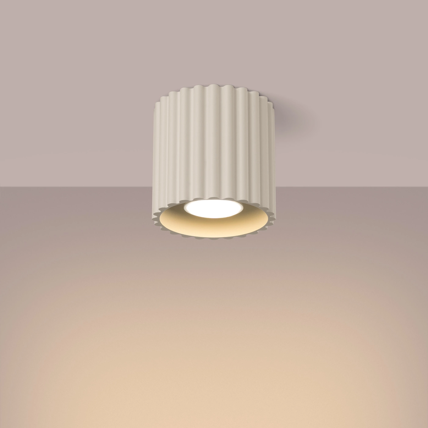 - Elegancki design: Beżowy, ryflowany kształt oprawy doskonale wpisuje się w nowoczesne i minimalistyczne wnętrza.