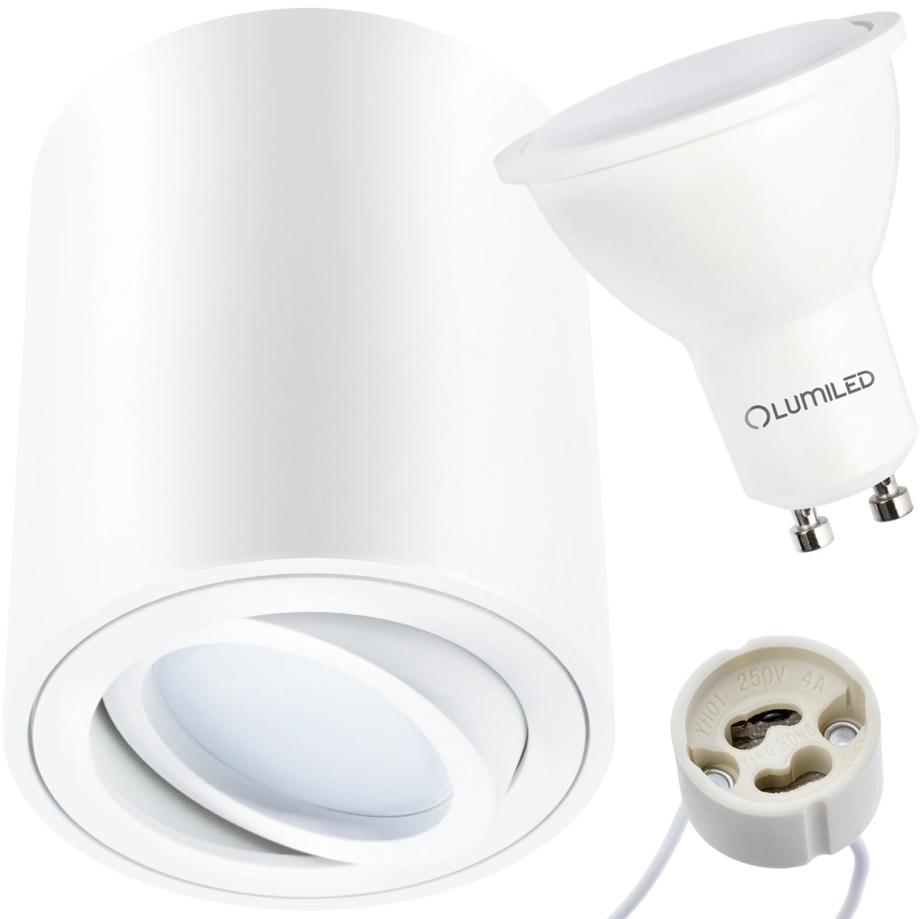 Oprawa Natynkowa HALOGENOWA Spot Tuba Ruchoma Okrągła Biała 84mm + Żarówka LED GU10 6W 120° 3000K AMAT-M LUMILED