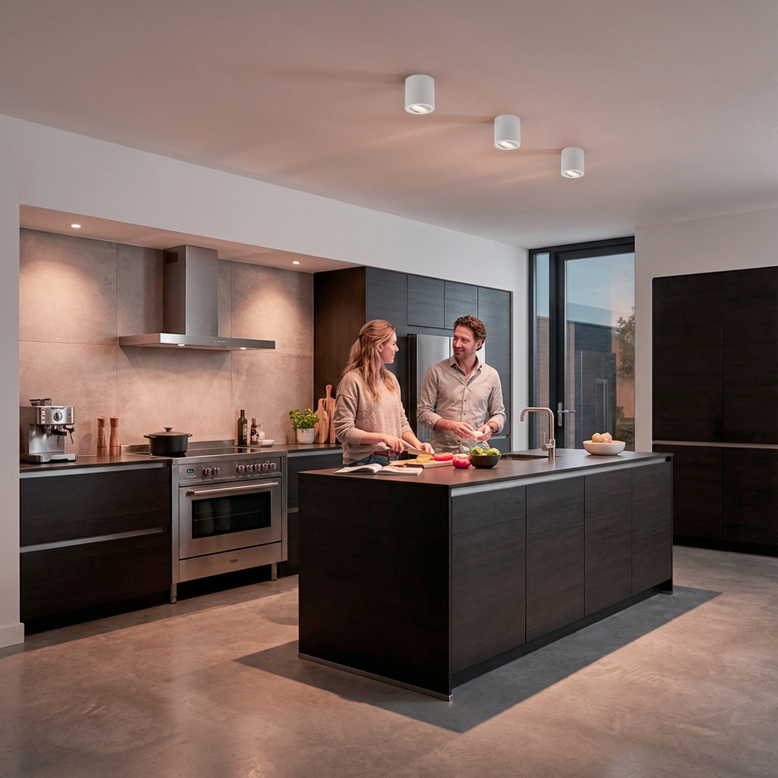 - Precyzyjne pochylenie 0–15° – ruchomy pierścień pozwala subtelnie skierować światło w dół, dzięki czemu łatwo doświetlisz wybrane miejsce bez przestawiania całej oprawy.